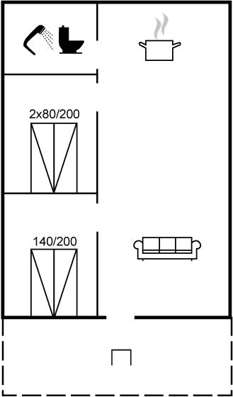 Der er i alt 2 soveværelser. Sovepladserne fordeler sig på: 4 sovepladser i dobbeltsenge.