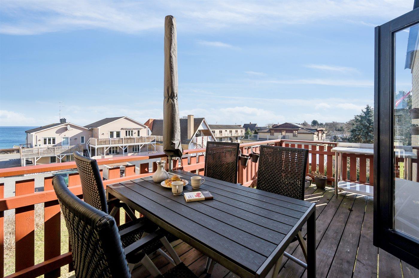 Lys og indbydende ferielejlighed på 1. sal med herlig altan med havemøbler, så man kan nyde udsigten til Østersøen. Med udgang direkte fra stuen er der også en ekstra overdækket terrasse. I 2020 er lejligheden moderniseret, så alting fremstår moderne og møbleringen gør at man føler sig tilpas - de store vinduer ud mod havsiden gør, at man også herfra kan følge naturens gang på havet. Foruden soveværelset er der en dobbelt sovesofa i stuen - og i det hele taget passer lejligheden godt til en fin ferie for 2 til 4 personer.