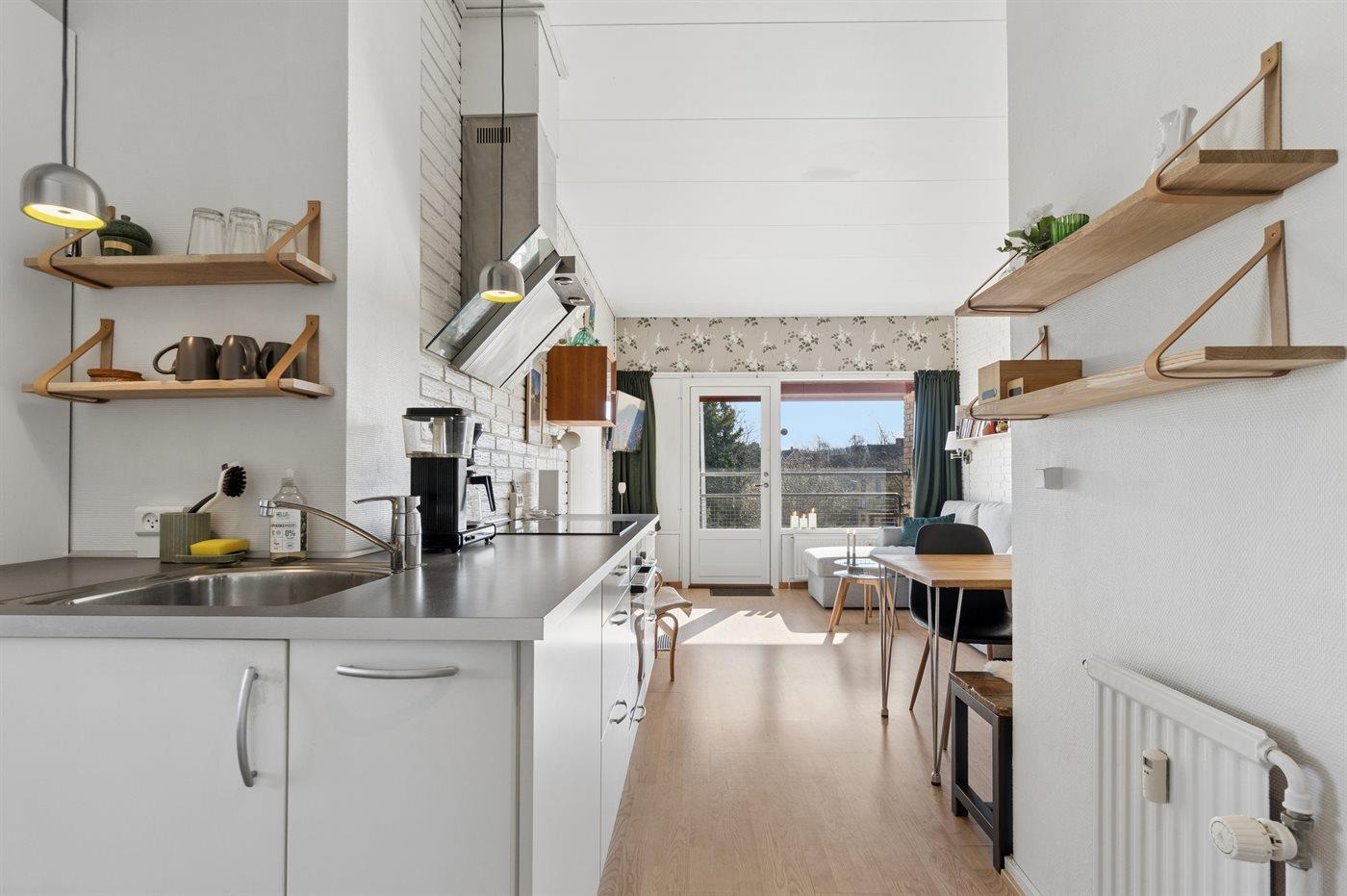 Køkkenet er udstyret med 1 køleskab. Der er 4 keramiske kogeplader, varmluftovn.