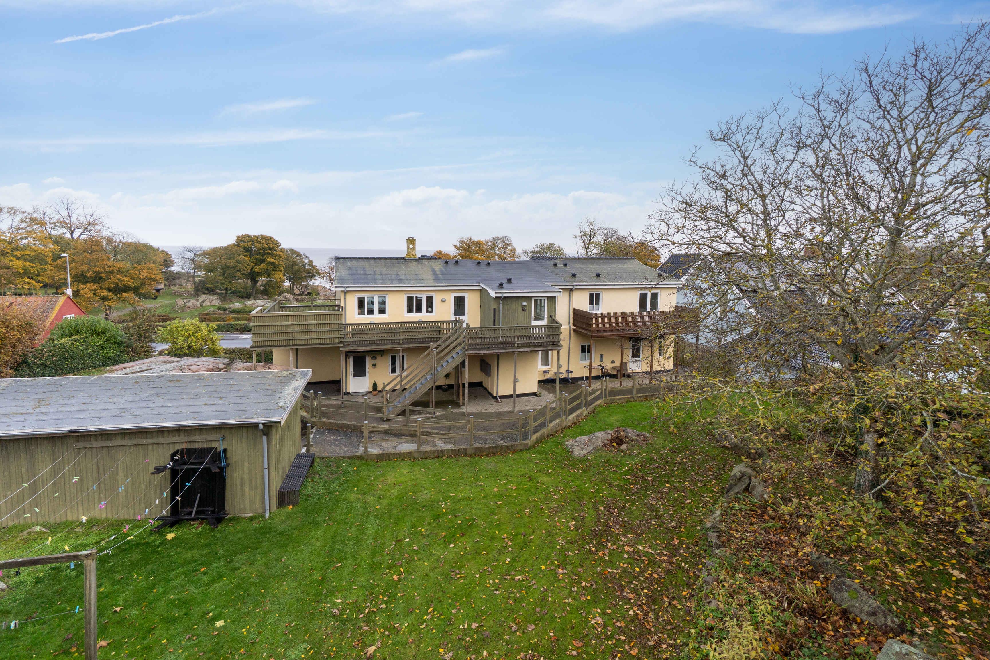 Velholdt lejlighed på 1. sal i en præsentabel ejendom, hvor udsigten til havet straks sætter feriestemningen. De 57 m² rummer et soveværelse og tre sovepladser, og indretningen er smagfuld og enkel, så opholdet føles afslappet fra første øjeblik. Fra stuen åbner udsigten sig mod parkanlægget ved Domen, hvor dagens rytme let følger lyset over havet. Afstanden til vandet er blot 150 meter, hvilket giver oplagte muligheder for en morgendukkert eller en stille aftentur langs kysten. Ejendommen har en charmerende havegrund med klipper, kroge og solpladser, der gør det nemt at finde et roligt hjørne til kaffe eller grill. Parkering findes lige ved bagvejen, så ankomsten er ukompliceret. Området er et ideelt udgangspunkt for ferieoplevelser. Det offentlige parkanlæg foran boligen danner rammen for Folkemødet, og her mærker man energien helt tæt på. Byens centrum ligger kun få minutters gang væk i den ene retning, og Sandvig i den anden. Naturen er lige så tilgængelig: kyststier, klippeformationer og flere smukke vandreruter starter nær boligen, og havet indbyder til svømning året rundt. Cykler kan lejes i nabolaget, og offentlig transport giver let adgang til resten af øen. Lejligheden er derfor et stærkt valg for gæster, der ønsker både udsigt, nærhed til bylivet og en base midt i Nordbornholms natur.