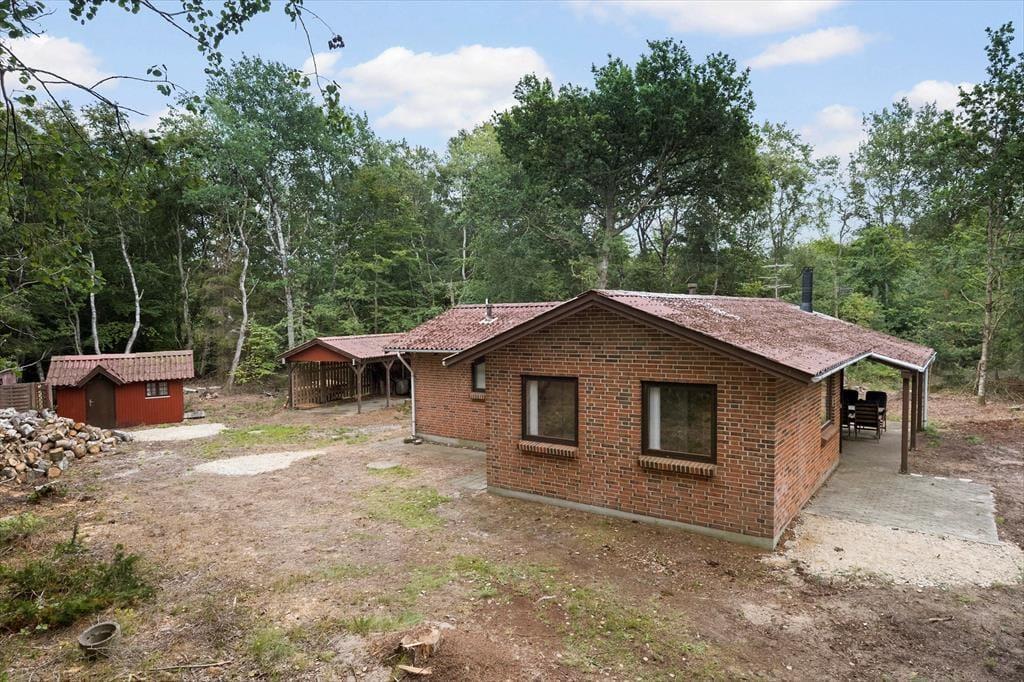 Dette solide murstenshus byder dig velkommen med en varm og indbydende atmosfære. Indenfor mødes du af et åbent rum, hvor køkkenet smelter sammen med stuen, hvilket skaber et lyst og rummeligt opholdsområde. De gode møbler indbyder til afslapning, og på kølige aftener kan du tænde op i brændeovnen, lade flammerne danse og skabe en hyggelig stemning, mens du nyder en god bog eller samvær med dine nærmeste.