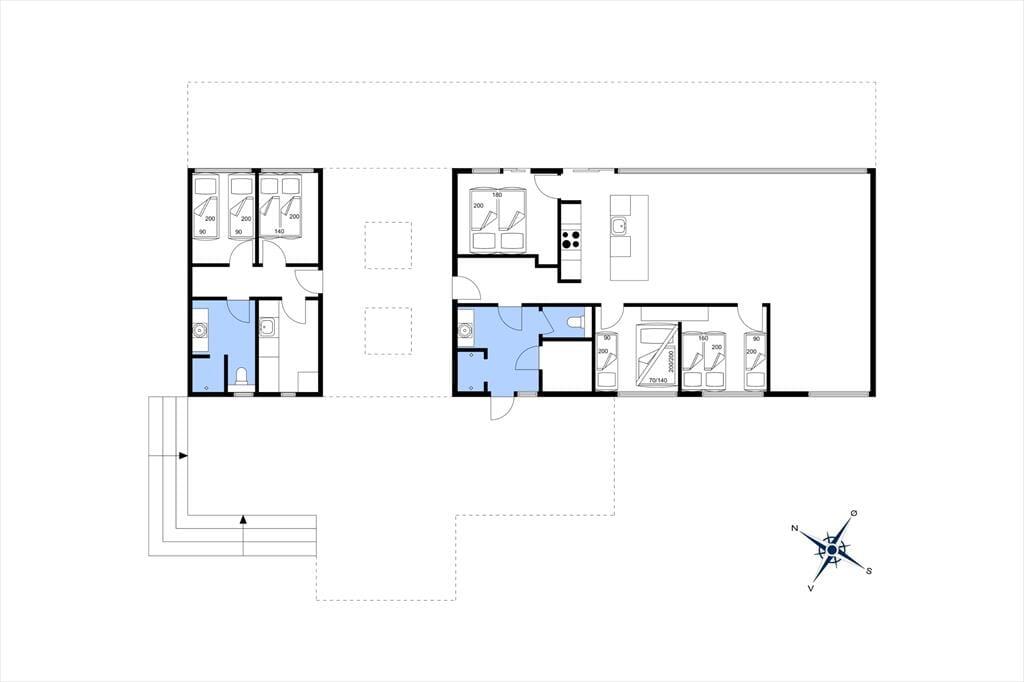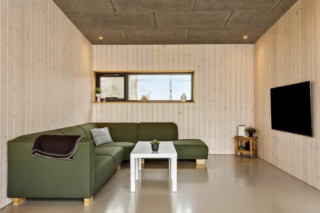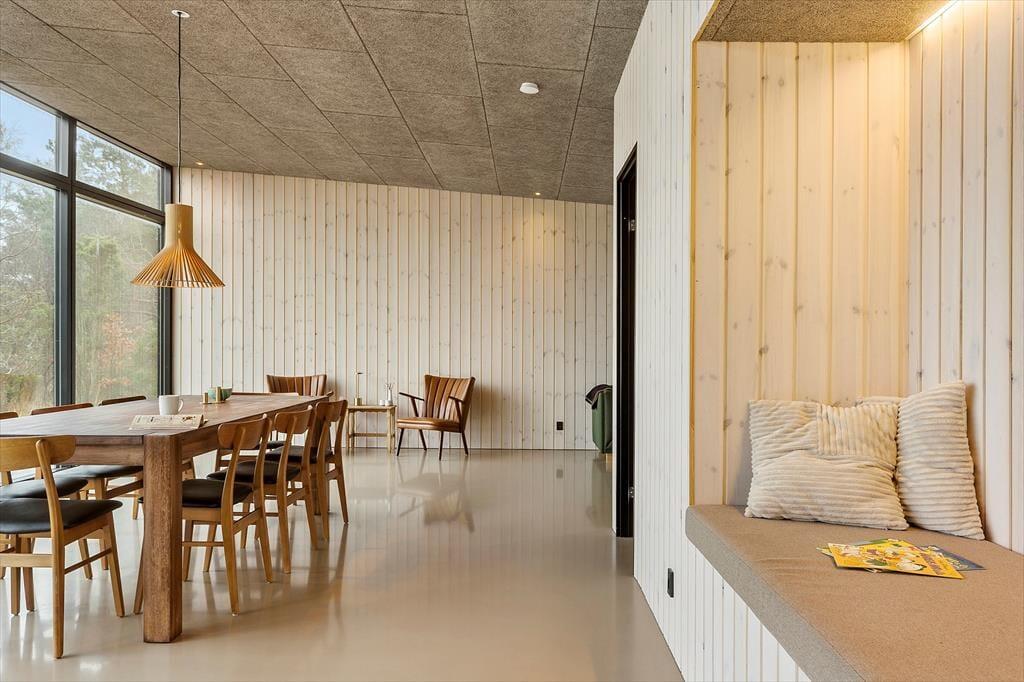 Sommerhuset er indrettet med stil og omtanke, og så snart du træder indenfor, mærker du den indbydende atmosfære. Lyse farvetoner, kvalitetsmaterialer og moderne møbler skaber en rolig og harmonisk stemning, hvor du straks føler dig hjemme. Det store opholdsrum fungerer som husets naturlige samlingspunkt med et åbent køkken og en hyggelig spiseplads, hvor måltiderne kan nydes med udsigt til den omkringliggende natur. I siddekrogen kan du synke ned i en blød stol med en god bog eller nyde en kop kaffe, mens du kigger ud over landskabet. En smart detalje ved sommerhuset er den separate soveafdeling, der giver ekstra privatliv til familier eller vennepar, der rejser sammen. Her finder du rummelige soveværelser og et badeværelse, så alle kan trække sig tilbage til eget fredelige hjørne efter en dag med oplevelser.