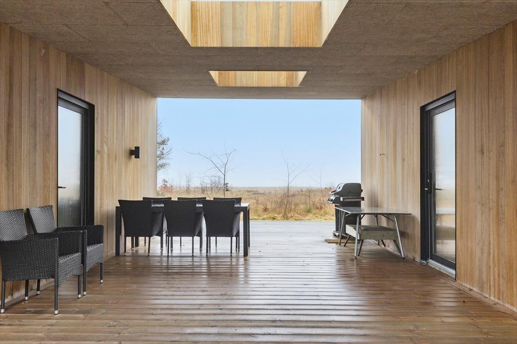 Sommerhusets beliggenhed er et kapitel for sig. Fra husets store vinduespartier kan du nyde den fantastiske udsigt over de grønne omgivelser, og fra terrassen bliver naturoplevelsen endnu mere nærværende. Terrassen er delvist overdækket, så du kan sidde ude i al slags vejr, og havemøblerne indbyder til lange, afslappede dage i det fri. Start morgenen med en stille stund på terrassen, mens duggen stadig ligger på græsset, og glæd dig til hyggelige aftener, hvor grillen kan tændes, og familien samles om et godt måltid under åben himmel