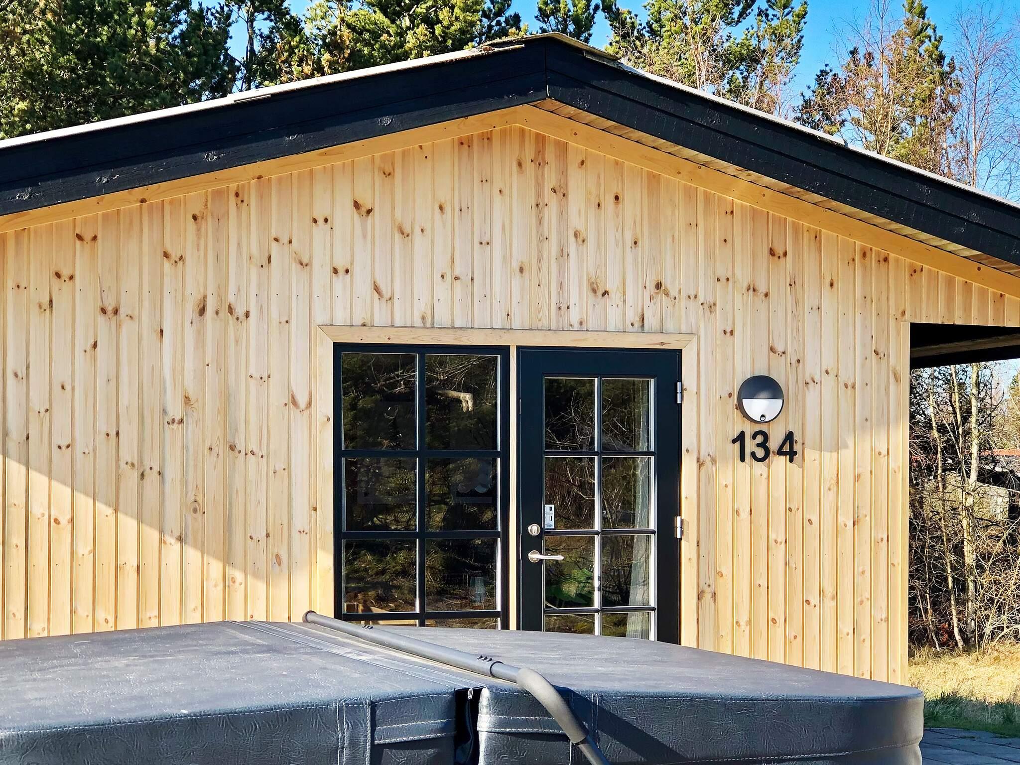 Udenfor er en dejlig overdækket terrasse et perfekt sted at nyde måltider, slappe af med en bog eller blot nyde den friske luft. Ejendommen har også et udendørs spabad, ideel til at slappe af, mens du nyder de naturlige omgivelser. Fjorden ligger kun 250 meter væk og tilbyder nem adgang til vandaktiviteter, naturskønne vandreture og muligheder for at udforske det lokale landskab. Denne ejendom er perfekt til en afslappende ferie, der kombinerer moderne komfort, underholdning og nærhed til naturen.