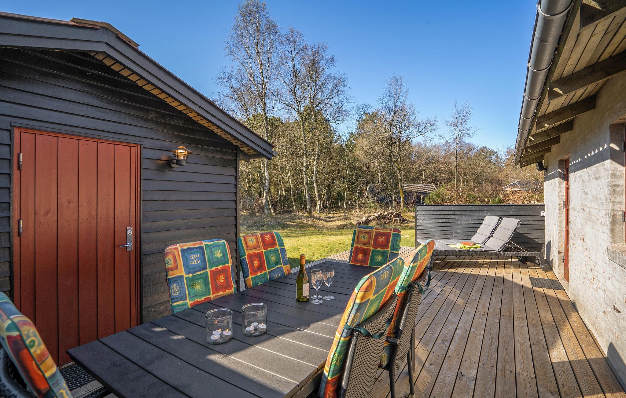 Den åbne terrasse med havemøbler og grill lægger op til masser af gode stunder i den friske luft. Hvis I er flere af sted, er det oplagt at tage et spil kroket og vikingespil. Der er knap en kilometer til stranden, hvliket gør det muligt at sætte mange timer af til sol, sand og vand såvel som rolige gåture. Aalborgs mange kulturtilbud er kun en times køretur væk.