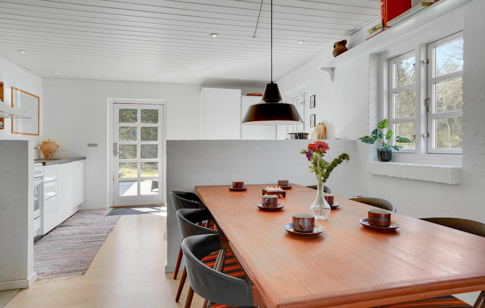 Huset er lyst og hyggeligt indrettet, så I får en skøn base, uanset om I vælger at holde ferie her i sommer- eller vinterhalvåret. Husets hjerte er opholdsstuen med et behageligt sofahjørne, spiseplads og åbent køkken. Sæt jer til rette foran pejsen, eller afslut dagen med en lækker middag.