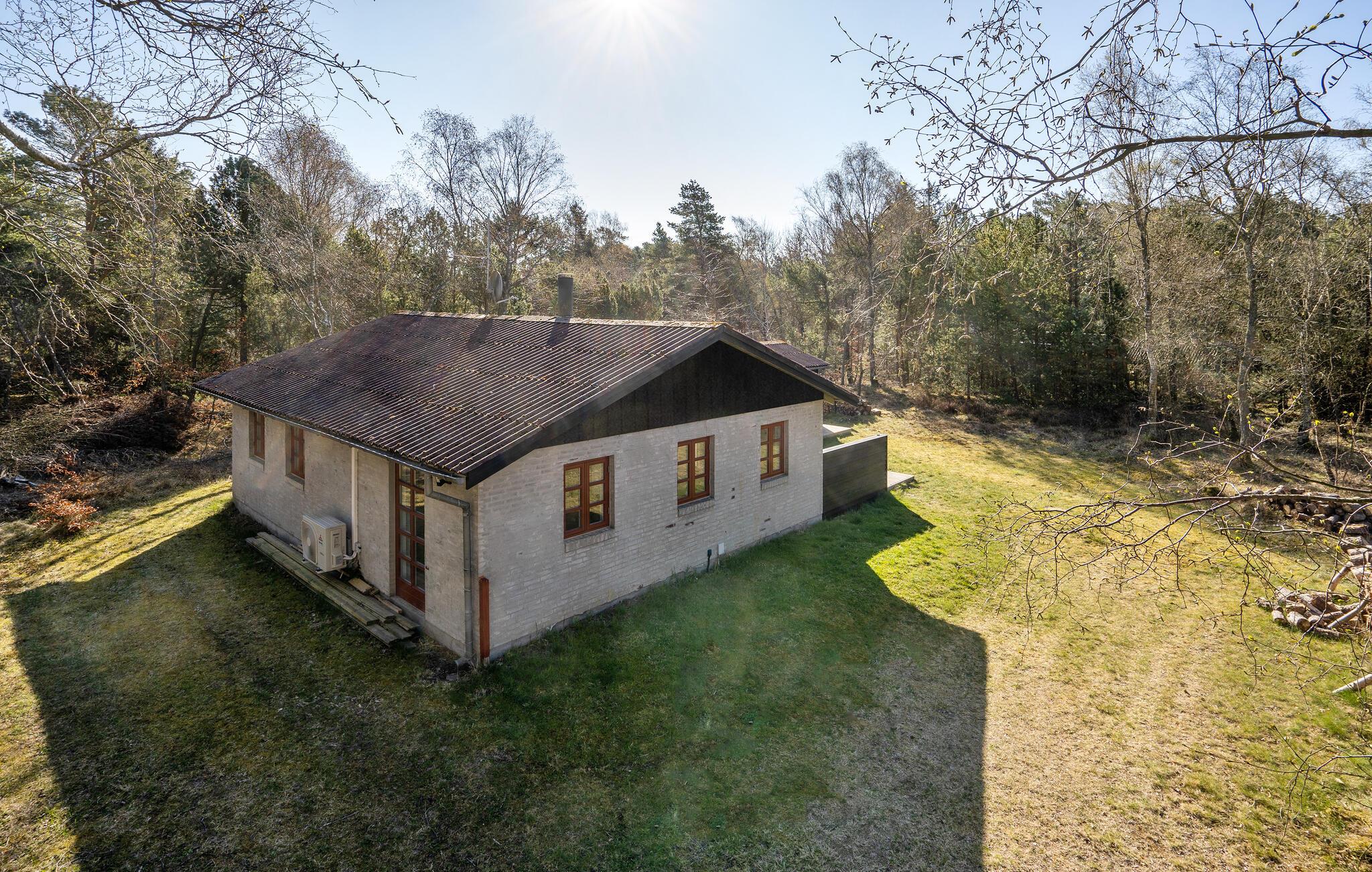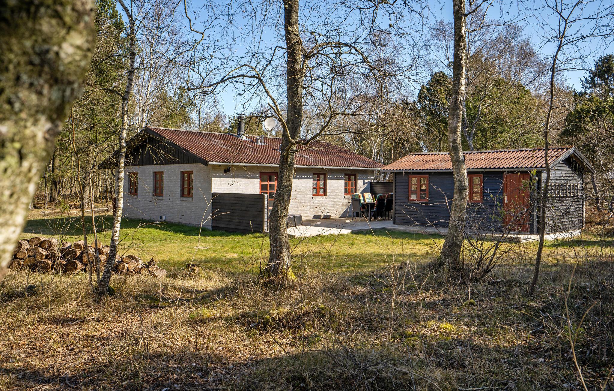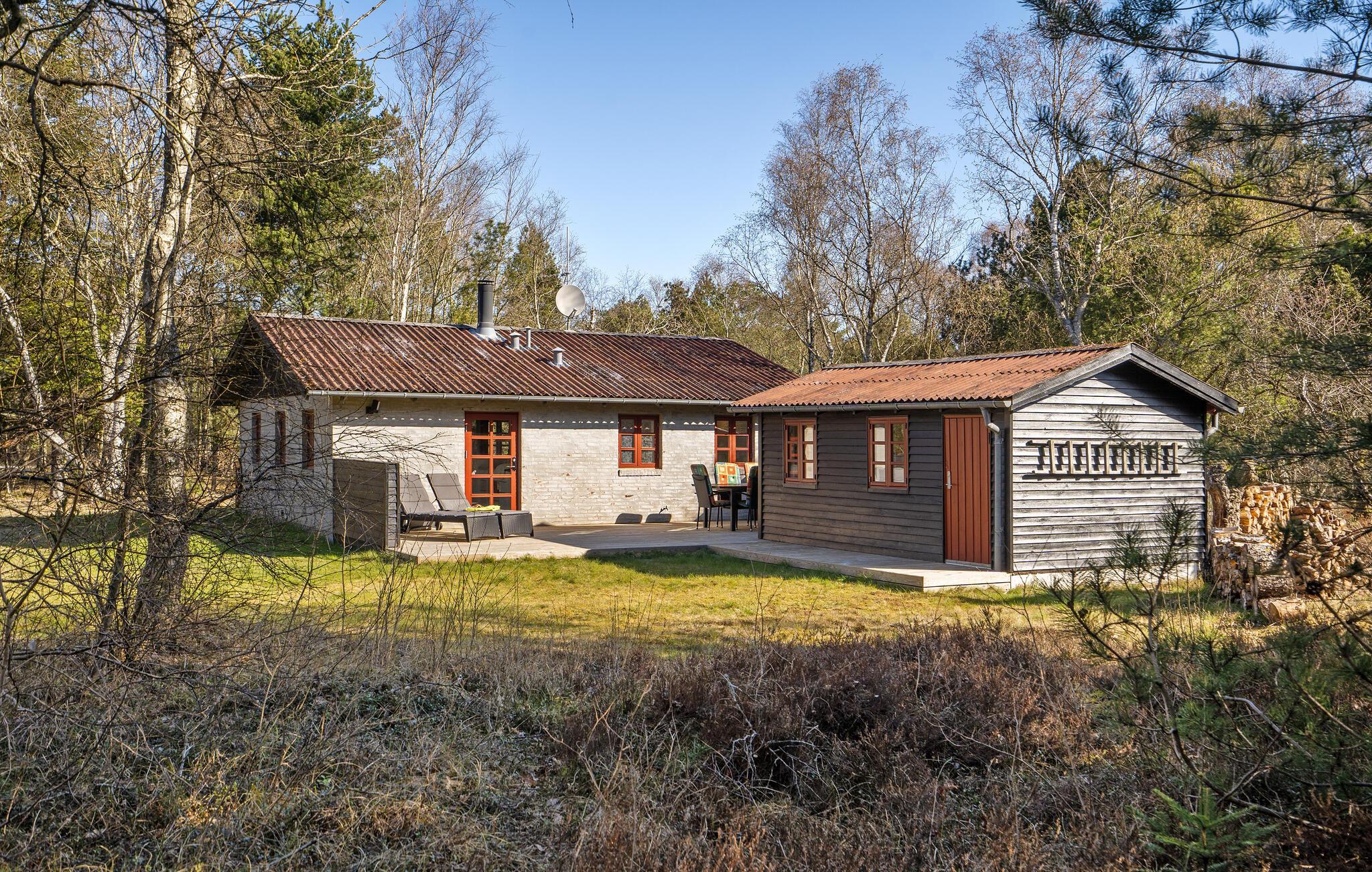 Dette charmerende feriehus ligger dejligt placeret på en grund omgivet af træer.