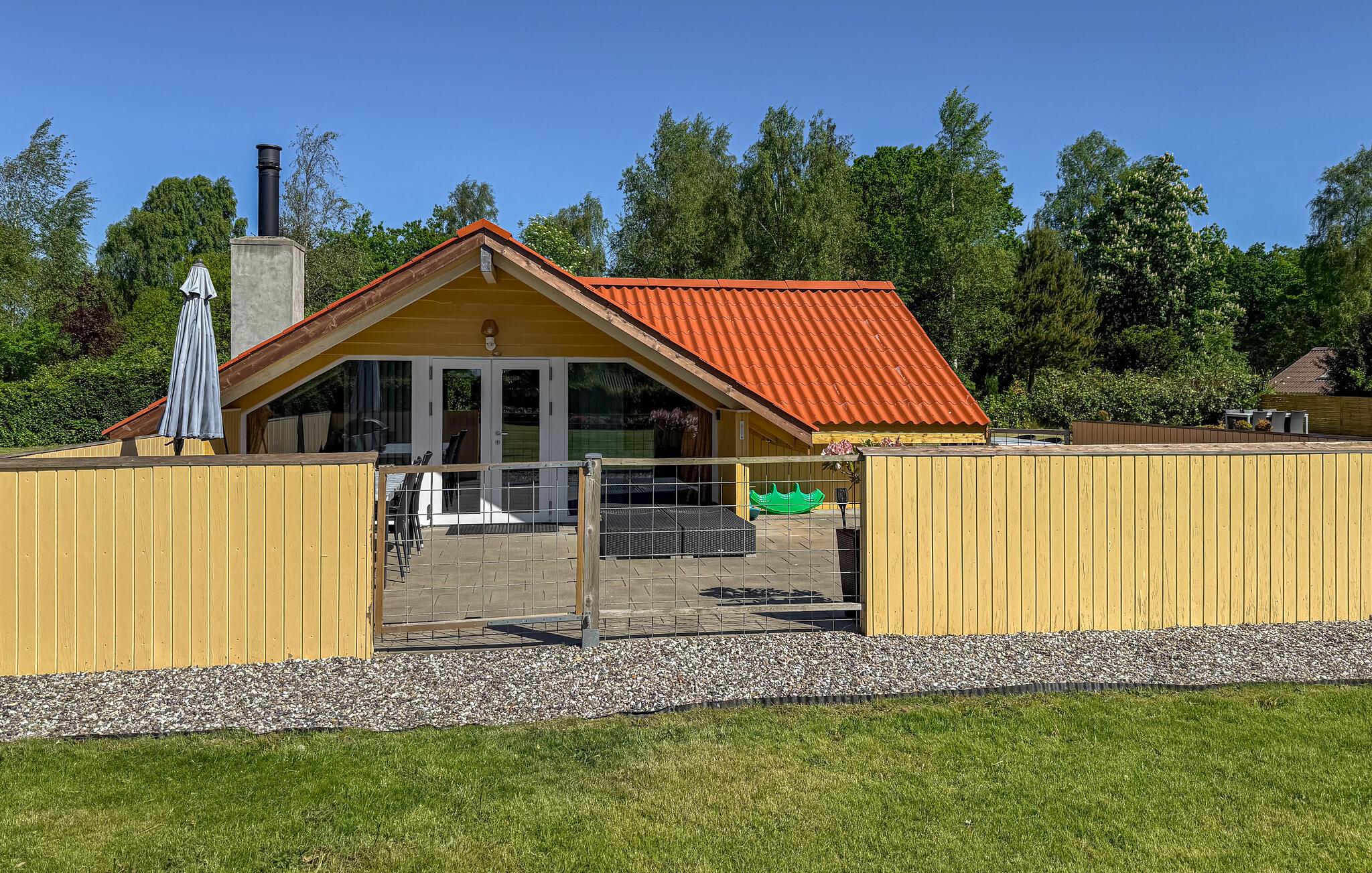 Hyggeligt træhus tæt på Als Odde Strand med terrasse, naturgrund og familievenlige faciliteter.