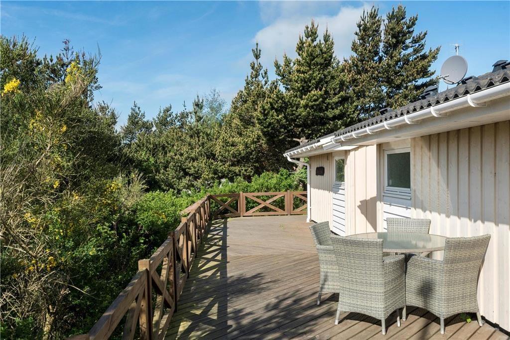 Det føles som ren balsam for sjælen, når du tager morgenkaffen med ud på den østvendte terrasse for at nyde både havudsigten og solopgangen. Også senere på dagen er det skønt at sidde her i de fredfyldte og smukke omgivelser – og hvis du trænger til at flytte dig lidt, kan du rykke om på syd- eller vestsiden af huset. Mod vest er der etableret en ny overdækket terrasse, så hvis du vil sidde længe ude om aftenen for at grille og hyggesnakke med dine kære, behøver I ikke at forholde jer til, om duggen falder. Fra terrassen går en trappe ned til den skønne naturgrund, hvor børnene kan gynge og lege gemme mellem træerne, og ved parkeringsarealet er der etableret en ladestander til elbil.