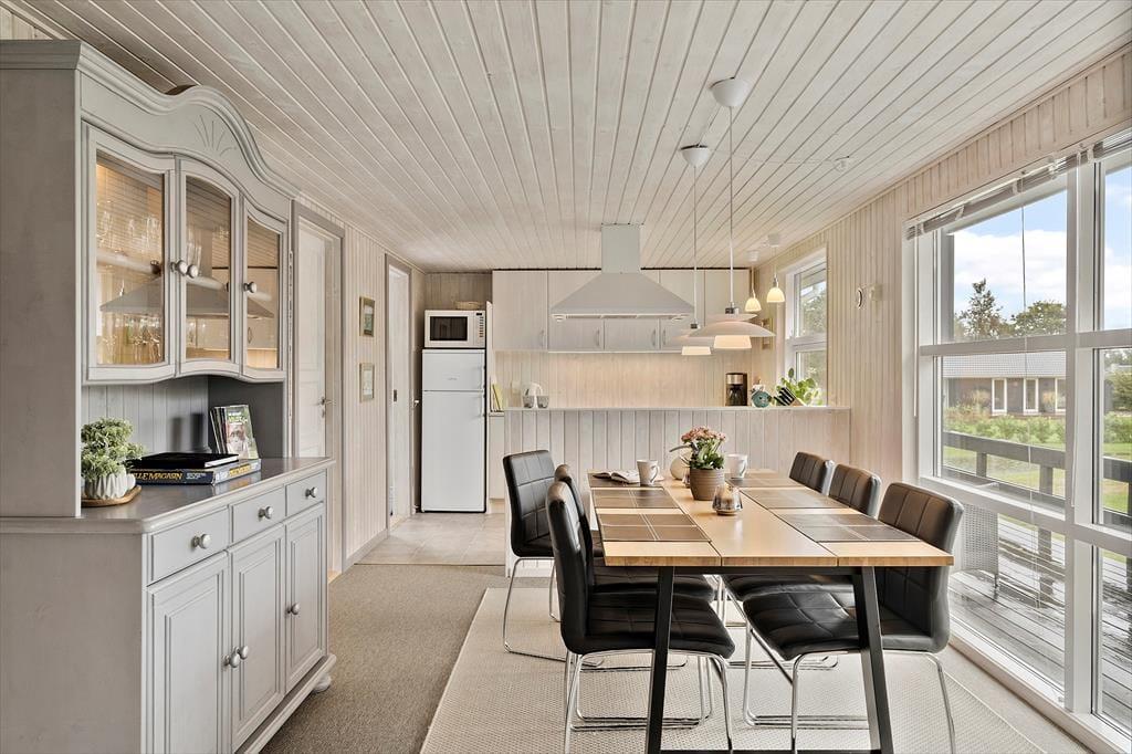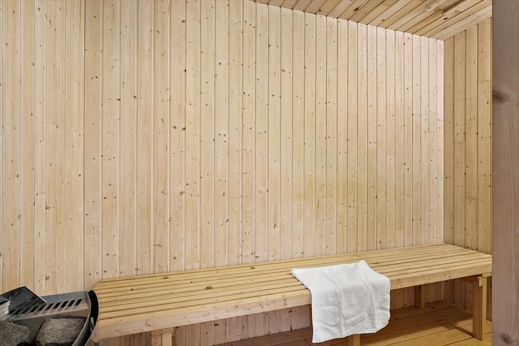 Sommerhuset er et stort og velindrettet eksemplar på 95 m2, der kort fortalt byder på tre soveværelser, et badeværelse, en entré med vaskefaciliteter samt en stue med integreret køkken. Trænger I mest til at slappe af inden døre, kan det blandt andet foregå i badeværelsets sauna, hvis ikke I hellere vil samles i stuen for at drikke varm kakao nær brændeovnen. Mens I sidder godt tilbagelænet i sofaafdelingen, kan I nyde det dejlige lysindfald, som de store stuevinduer giver. Med TV og CD-anlæg er der mulighed for både at se film og høre musik, og i det åbne køkken kan I give jer i kast med madlavningen, hvilket også kan være en dejlig hyggestund, når der er god tid til at kokkerere.