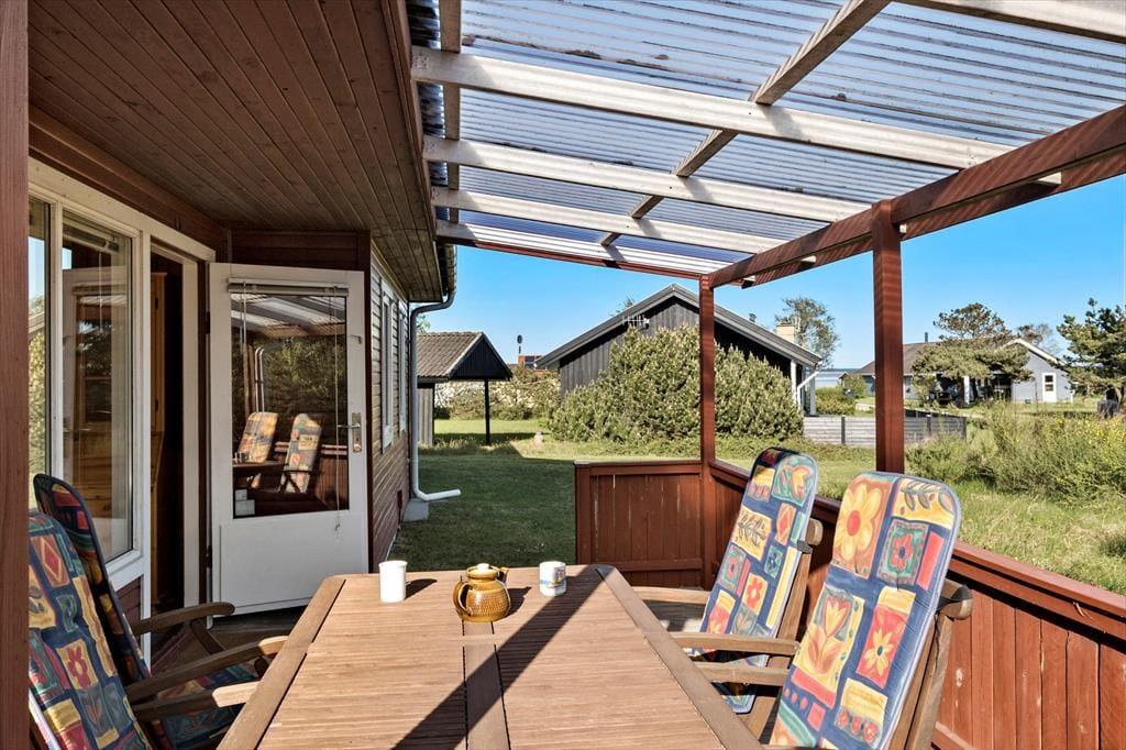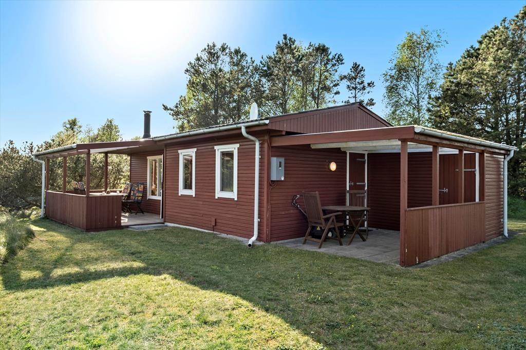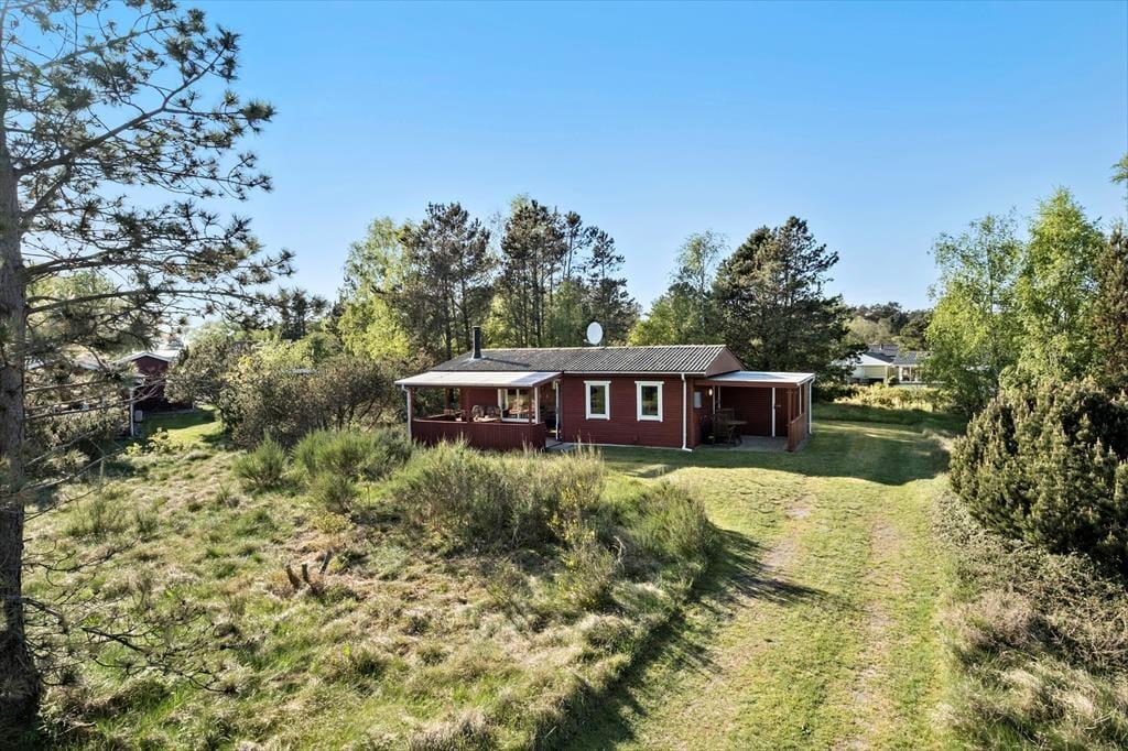 Huset ligger på en 1326 m2 stor naturgrund, der sætter en skøn ramme om udendørslivet på ferieturen. Den overdækkede terrasse er et oplagt sted at servere måltiderne på de lune dage, hvad enten det er dagens første kop kaffe eller aftensmaden, der skal nydes i fællesskab. De grønne træer og de rolige omgivelser fylder kroppen med ro og velvære, og du kan altid finde en plet med sol eller skygge efter behov. Familiens yngste og andre barnlige sjæle får god plads til at lege på den store grund, og hele familien vil med sikkerhed få tanket op på velværekontoen af lyset, luften og de dejlige grønne omgivelser.
