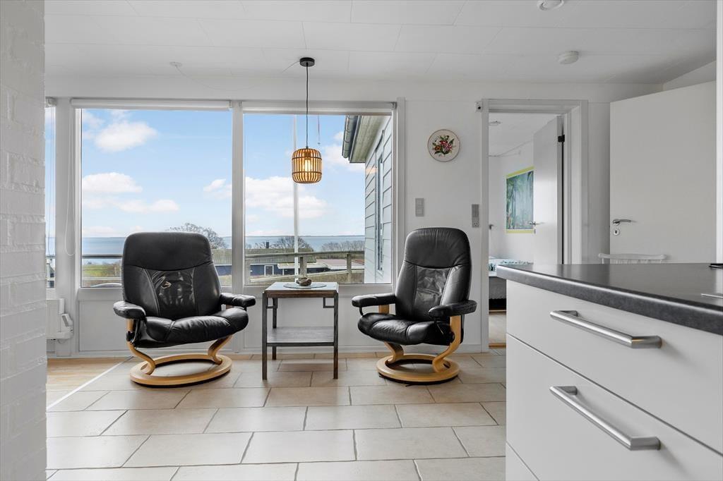 Der er noget særligt over stemningen i dette sommerhus, hvor lyset fra havet spejler sig i rummene, og du straks føler dig velkommen. Stuen er husets hjerte – med hyggelige møbler, varme trædetaljer og en skøn spiseplads, hvor feriens måltider kan nydes med udsigt til naturen udenfor. Det åbne opholdsrum giver plads til samtaler, læsning, spil og afslapning, mens køkkenet har det, du har brug for til at lave alt fra morgenkaffe til aftensmad med friskfanget fisk. Her handler det om at finde roen – og den kommer hurtigt, når man kan trække stikket og bare være sammen i afslappede omgivelser med naturen som nabo.