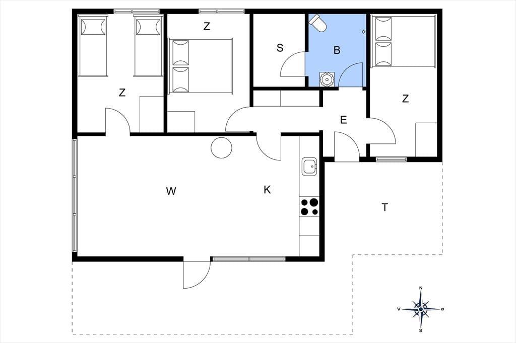 Sommerhus i Sydals, Sydøstjylland, med plads til 6 voksne og 2 husdyr. Der er en hyggelig indretning med bl.a. brændeovn.