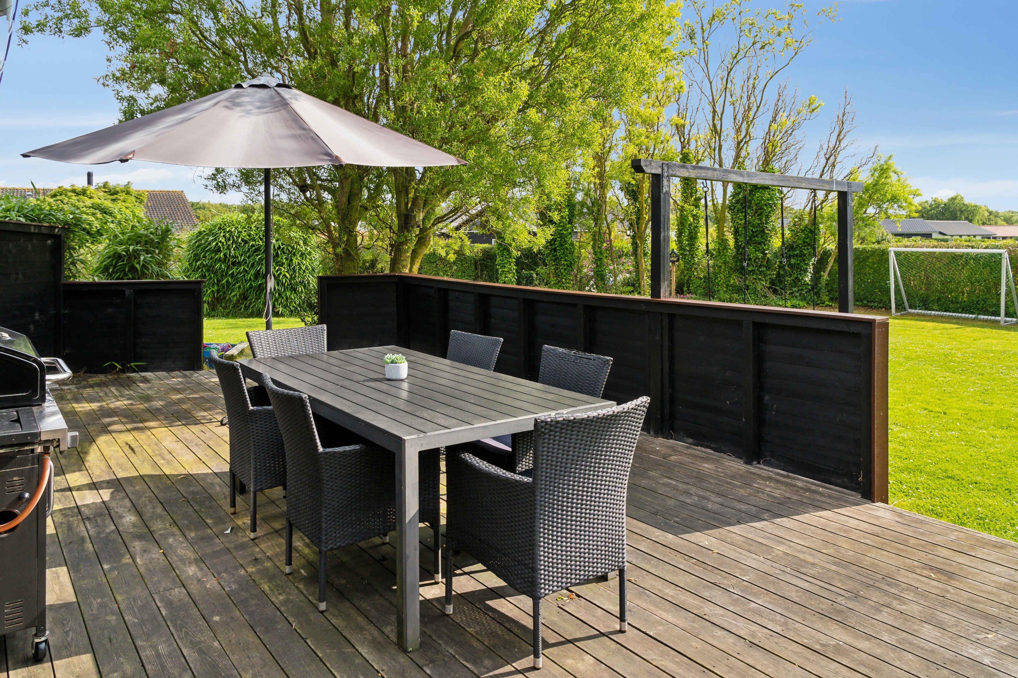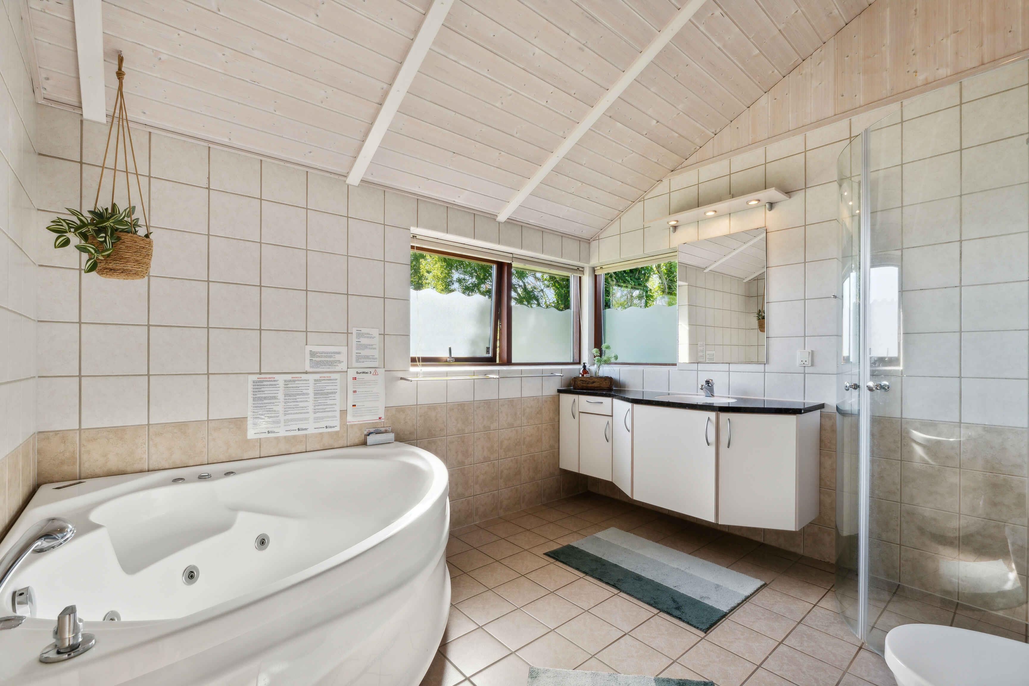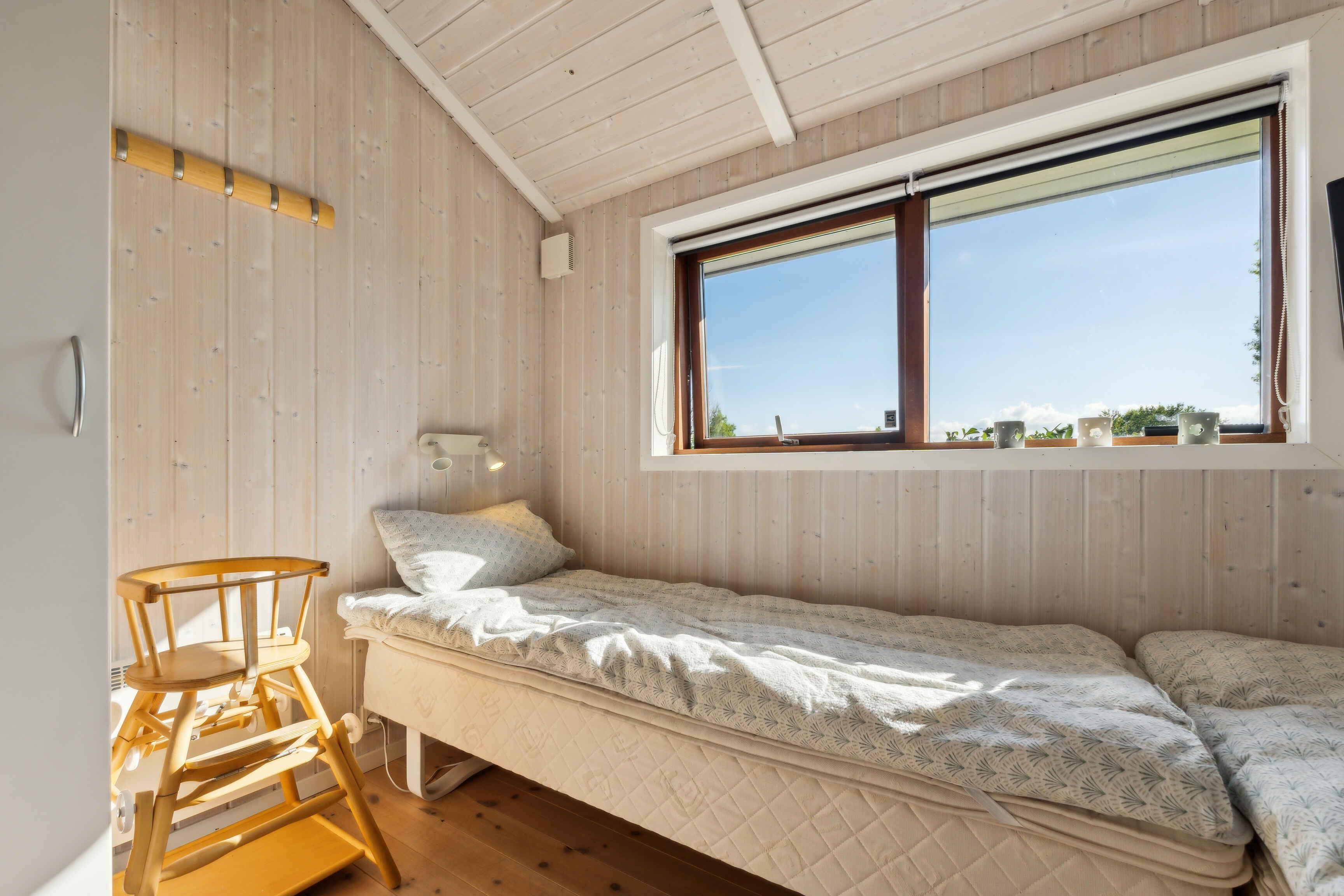 Velkommen til dette vidunderlige sommerhus, som er det perfekte sted for en afslappende ferie med familie og venner. Sommerhuset er velindrettet og byder på en hyggelig atmosfære med moderne faciliteter, der sikrer komfort og bekvemmelighed året rundt. Inde i sommerhuset finder I en dejlig indendørs spa, hvor I kan slappe af og lade op efter en dag fyldt med aktiviteter. De store vinduespartier lader dagslyset strømme ind og skaber en lys og luftig atmosfære i hele huset. Fra stuen har I en fantastisk udsigt til den omkringliggende natur, hvilket giver en følelse af at være tæt på naturen, selv når I er indendørs. Den rummelige have er en sand oase for både børn og voksne. Her er der masser af plads til leg og aktiviteter, og I kan nyde de lange sommeraftener med udendørs middage, grillfester og hygge omkring bålpladsen. Haven er designet til at være børnevenlig, så de små kan lege frit og sikkert. For de vandglade er den børnevenlige strand, der ligger i kort gåafstand fra sommerhuset, et absolut højdepunkt. Stranden er ideel til bade- og stranddage, hvor I kan bygge sandslotte, samle muslingeskaller og nyde havets brusen. Sommerhuset er udstyret med en luft/vand varmepumpe, der sikrer en behagelig temperatur uanset årstid. På køligere dage kan I tænde op i den hyggelige brændeovn, som spreder varme og skaber en dejlig stemning i stuen. Det åbne køkken-alrum gør det nemt at samles om madlavningen, og her er alt, hvad I behøver for at tilberede lækre måltider. Soveværelserne er indrettet med komfortable senge og god skabsplads, så I kan føle jer hjemme og få en god nats søvn. Badeværelserne er moderne og veludstyrede, og spaområdet byder på ekstra luksus og velvære. Uanset om I søger en aktiv ferie med udendørs oplevelser eller en rolig tid med afslapning og hygge, er dette sommerhus det ideelle valg. Obs, udlejes ikke til erhversmæssigt brug.