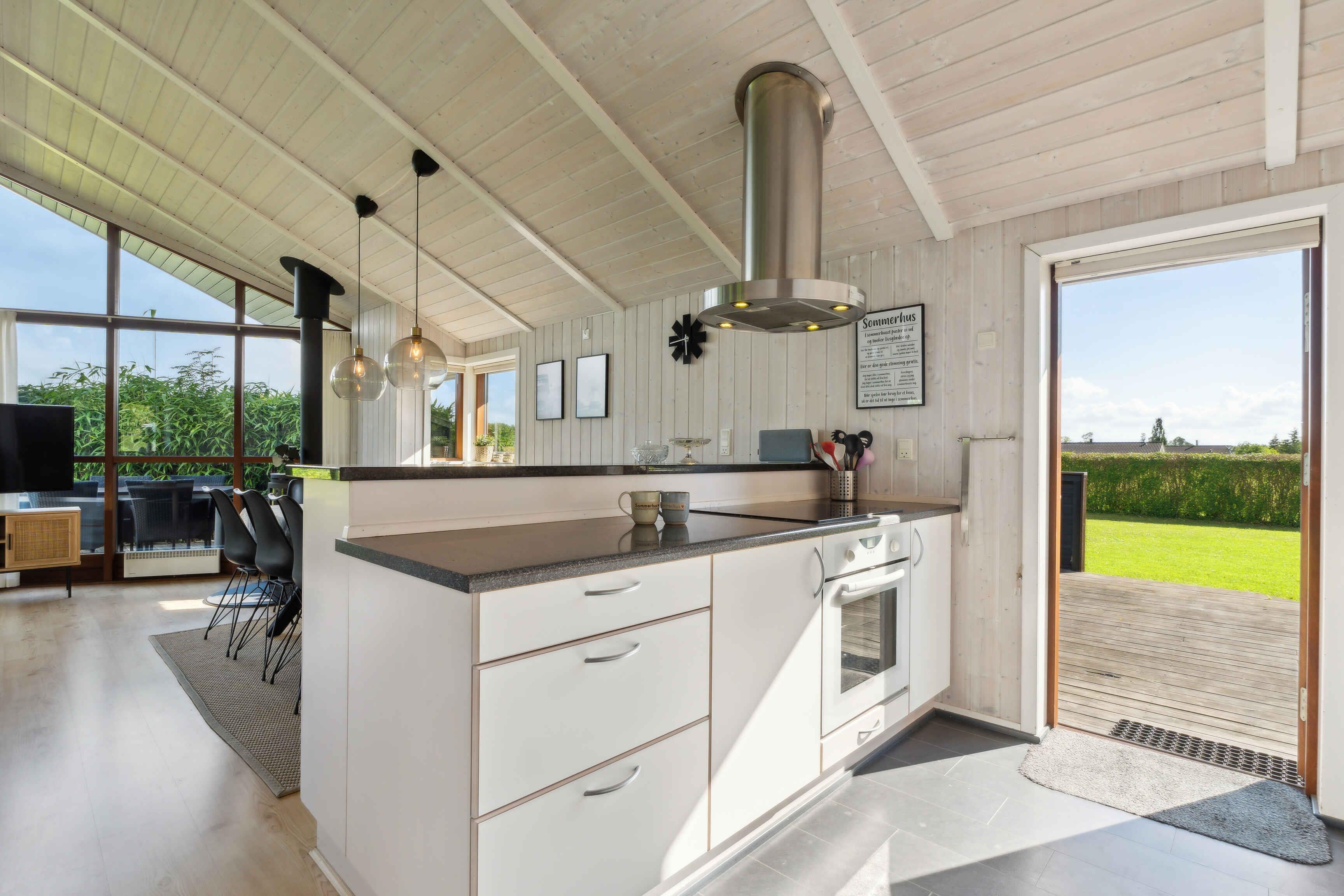 Hyggeligt sommerhus ved Skovmose på Als med spa, store vinduer, børnevenlig have og tæt på strand.