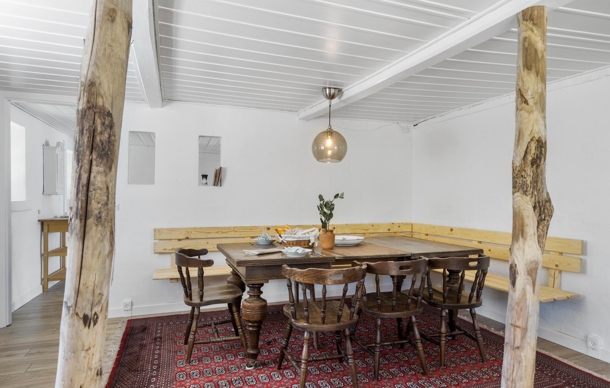 Hvis I er på udkig efter en særdeles charmerende bolig til årets familieferie, er dette dejlige stråtagshus i Alslev det helt rette valg for jer. Huset ligger på en stor, grøn grund tæt ved den lille landsbys kirke, og indvendigt emmer det af hygge og komfort over flere etager. De rustikke indretningsdetaljer suppleres ganske fremragende af de moderne faciliteter, som tilsammen skaber en boligoplevelse, der er både afslappende og behagelig. Køkkenet er særdeles veludstyret, så lad endelig familiens kokke kræse om livretterne, mens andre dækker op til en hyggelig middag ved det flotte spisebord af træ. Skulle vejret vise lidt tænder, er bare at fyre op i brændeovnen, der giver det helt rigtige lydtapet til aftenhyggen i den dejlige stue under skråvæggene.