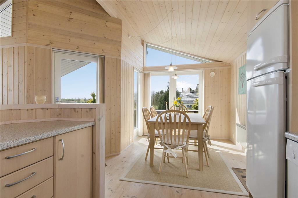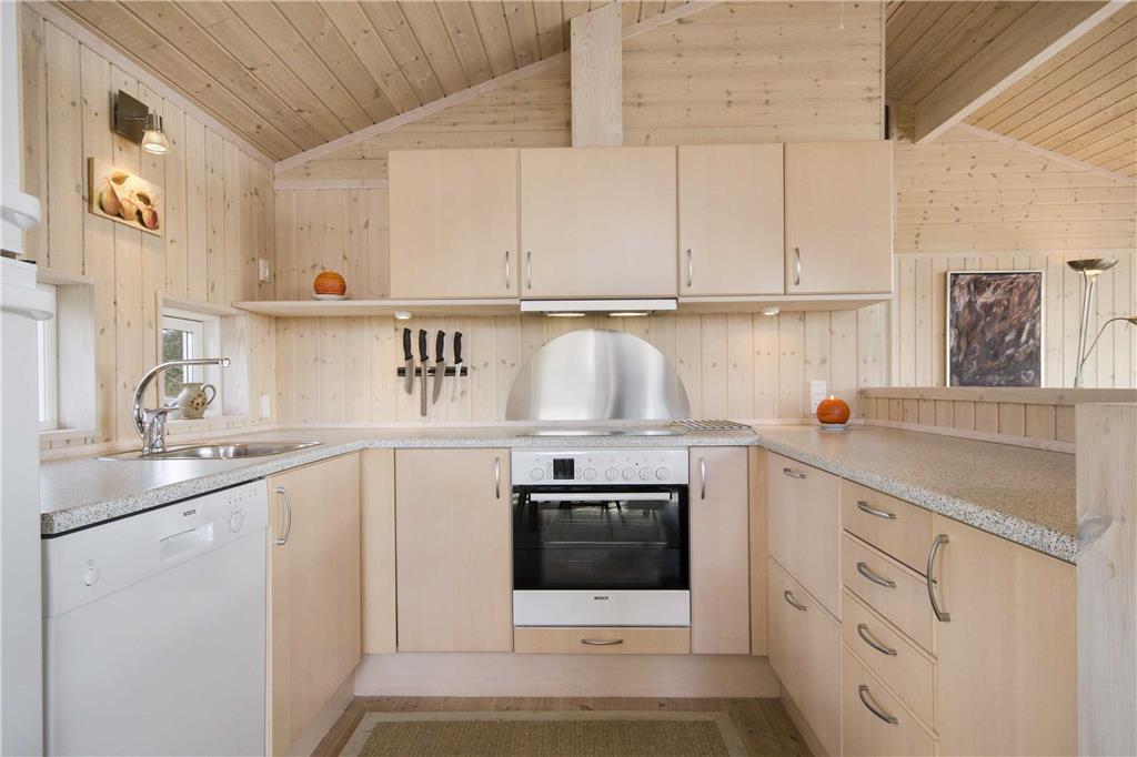 Sommerhusets hjerte finder man i det skønne køkken/alrum, hvor der er en stor stue i forbindelse med et flot køkken.
