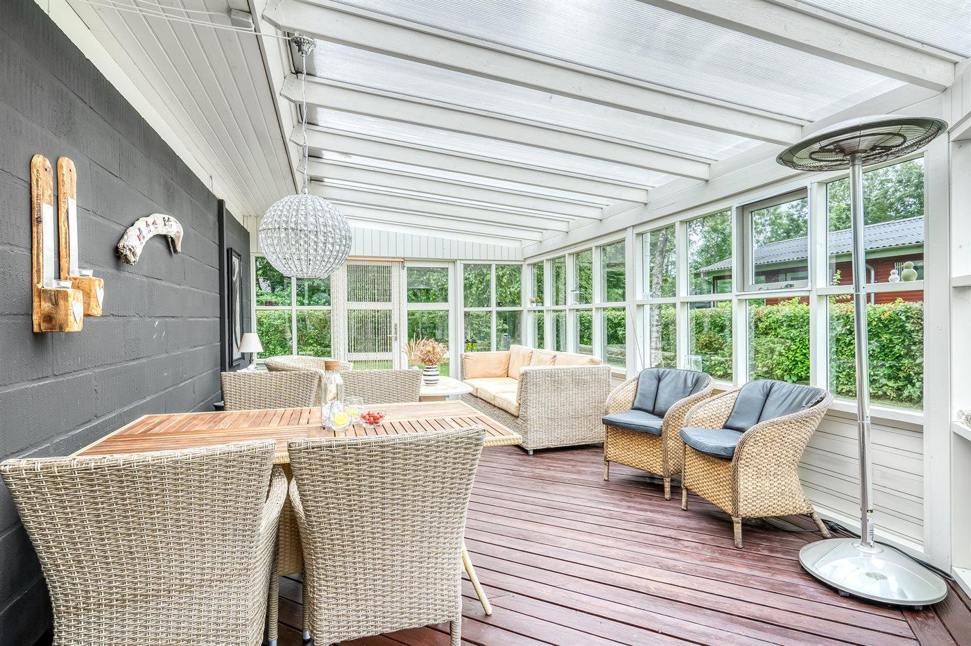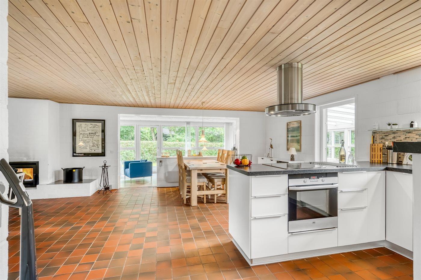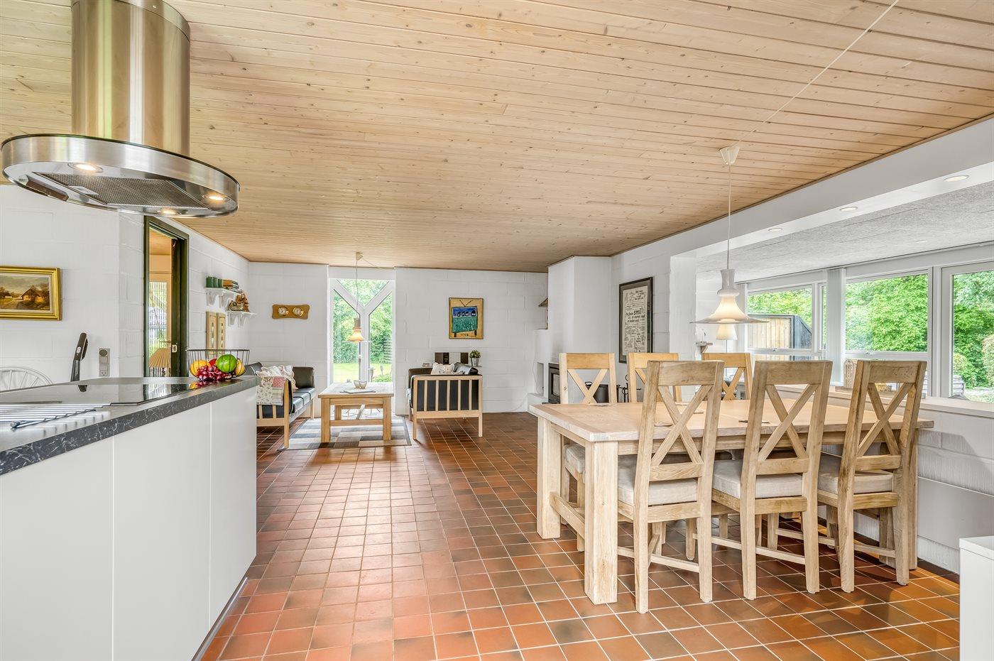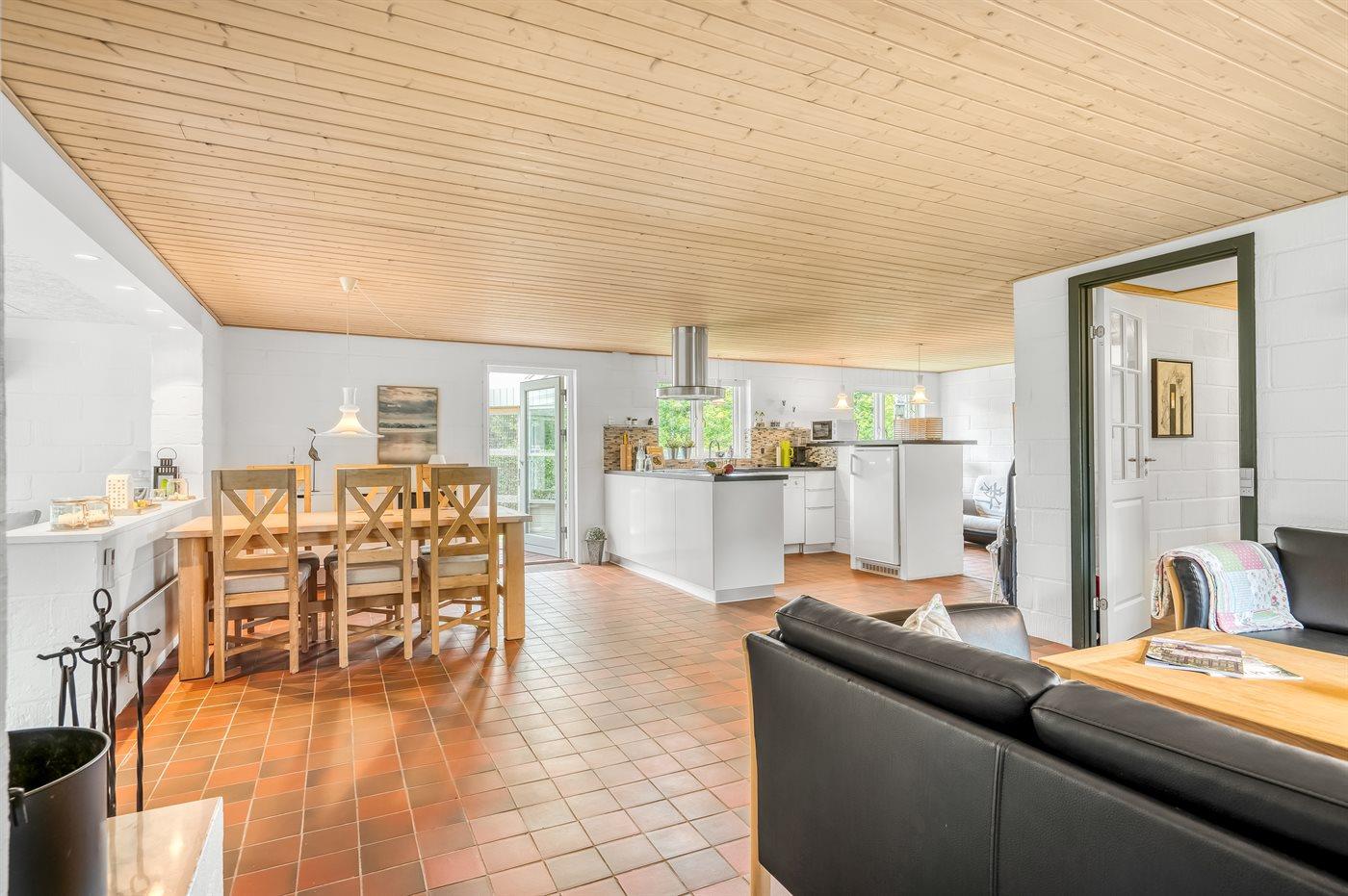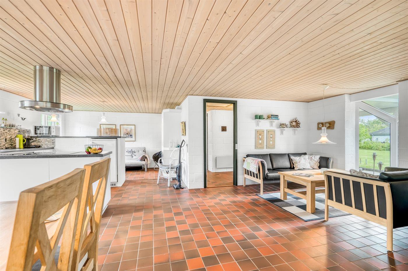 Feriehuset er løbende renoveret og fremstår flot og i god stand med stor kombineret køkken/stue og udestue, hvor der er udgang til terrasse.