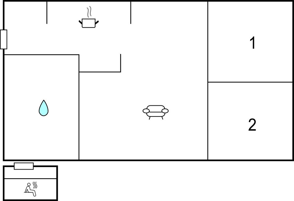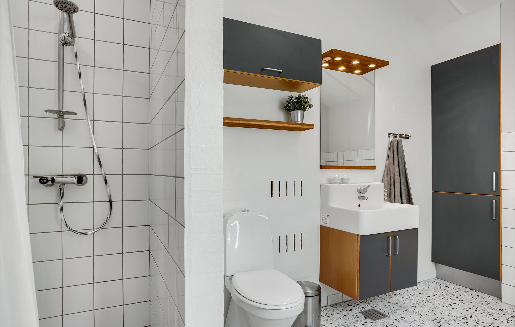 Badeværelse 9m2 (nr. 1) - WC. Varmt og koldt vand. Bruser og badekar