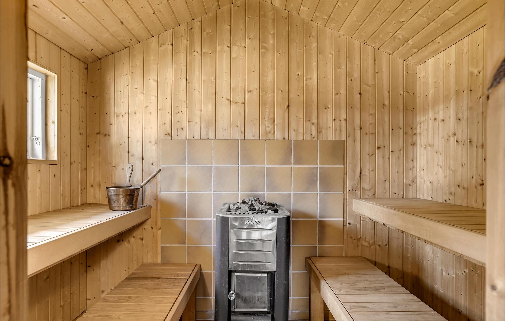 Dette pragtfulde feriehus ligger ved Amtoft Strand med kort afstand og kig til fjorden. På grunden ved siden af feriehuset ligger et lille separat hus indrettet med omklædningsrum og en finsk sauna der opvarmes af brændefyr (gratis brænde). Ferie ved Limfjorden byder på et utal af oplevelser for hele familien. Her er strandene oftest flade og børnevenlige. Lige velegnede til en dasedag i vandkanten eller på bølgen blå, med vandski, surfbræt eller en sejltur. På en tur langs Limfjord finder man overalt de flottest udsigtpunkter, hvor man kan lade sig betage af landskabets mosaik af øer, sunde, vige og småfjorde. Man bør unde sig selv en tur til den smukke ø Mors, hvor man ved samme lejlighed kan lægge vejen forbi Jesperhus Blomsterpark eller tage til den bilfri ø Livø og kigge på sælerne, som slikker solskin i brændingen.