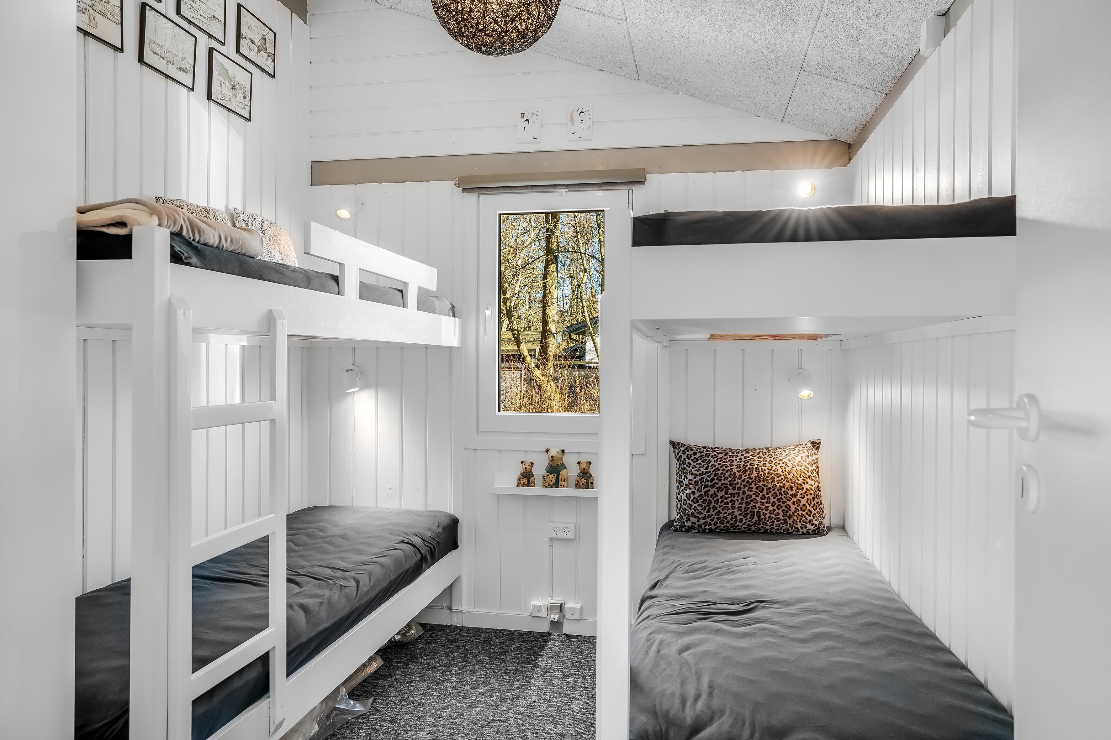 Huset har i alt 2 soveværelser med dobbeltsenge og 1 soveværelse med køjeseng, hvilket giver rummelige og komfortable sovepladser til alle gæster. Der er ét badeværelse, der er udstyret med en bruser og toilet. For underholdning er der to fjernsyn, der tilbyder både dansk og tysk TV, samt en DVD-afspiller og radio til at nyde dine yndlingsprogrammer og musik.