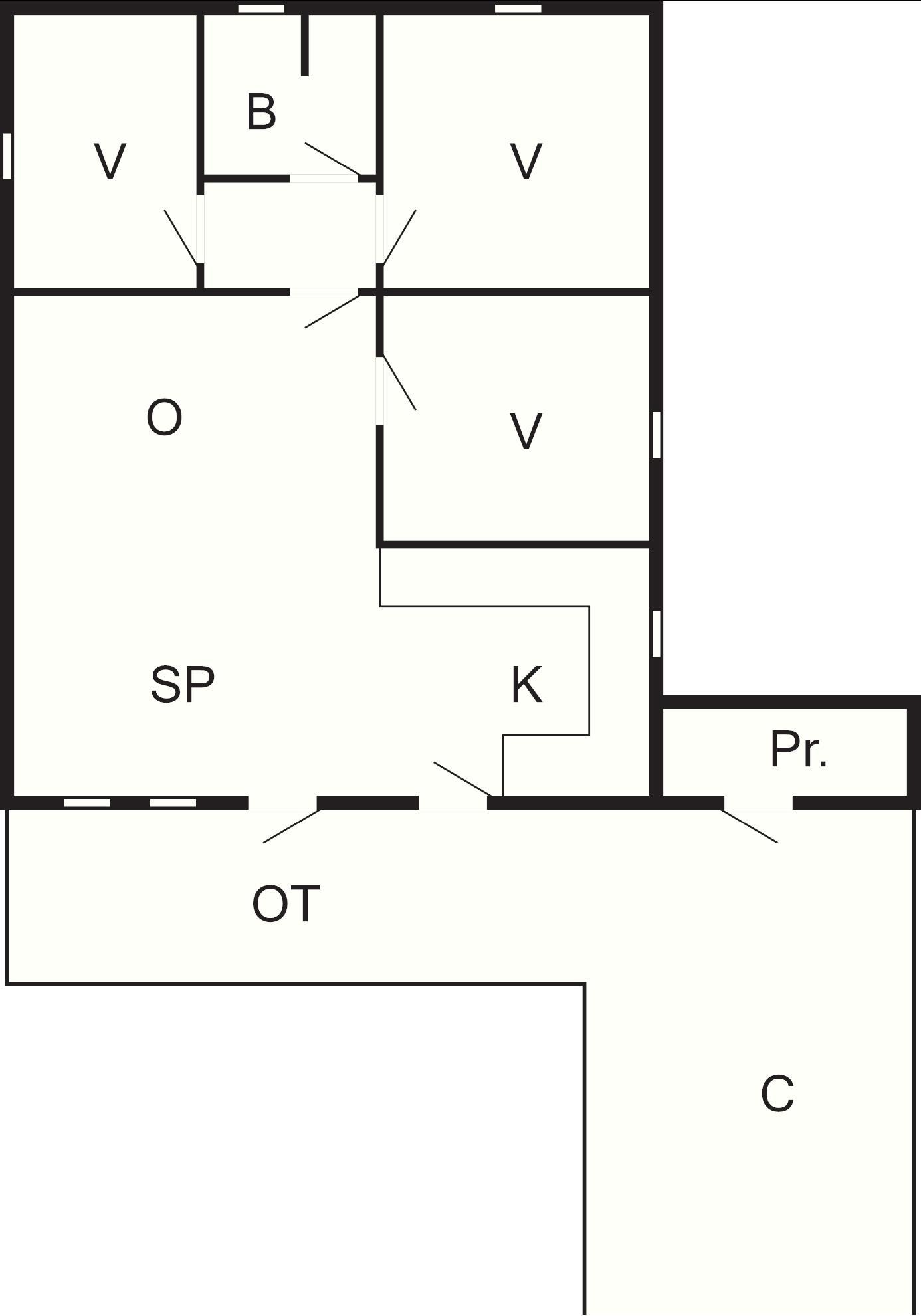 3 Soveværelser: (1DS)+(2DO)+(2S), barneseng