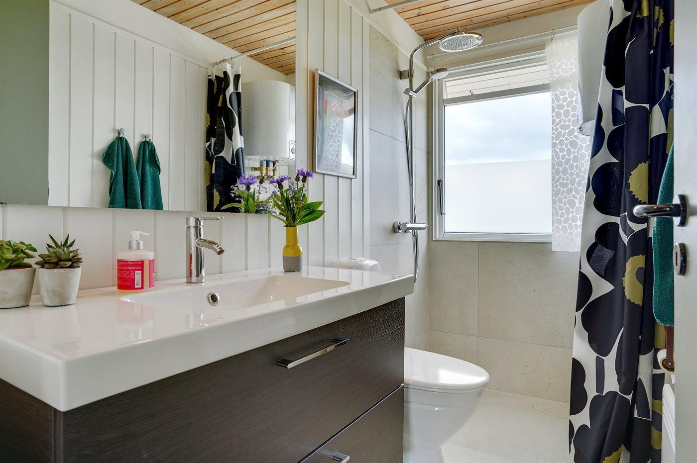 Et virkelig skønt sommerhus med en hyggelig indretning beliggende i et roligt og naturskønt omåde lige ved vandet med udsigt til fjorden fra såvel hus som grund. Huset ligger for enden af blind vej, ud til grønt fællesareal, på en dejlig og delvis lukket grund med skønne terrasser rundt om huset.