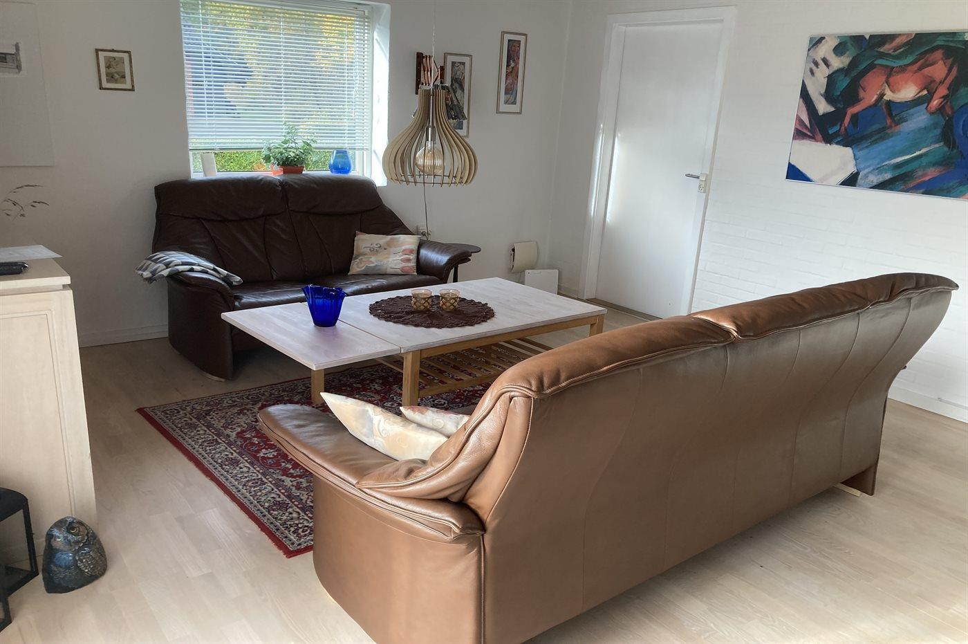 Indvendigt fremstår huset lyst og moderne med en rigtig god planløsning, så boligen er oplagt til f.eks. en familie med 2-3 børn og med mulighed for at tage f.eks. bedsteforældre med på ferie. Ellers er huset også oplagt til par, som ønsker at holde en ferie i helt rolige omgivelser. Den skønne have er et herligt sted at opholde sig. Grunden er dejlig og med god plads til, at børn kan boltre sig.