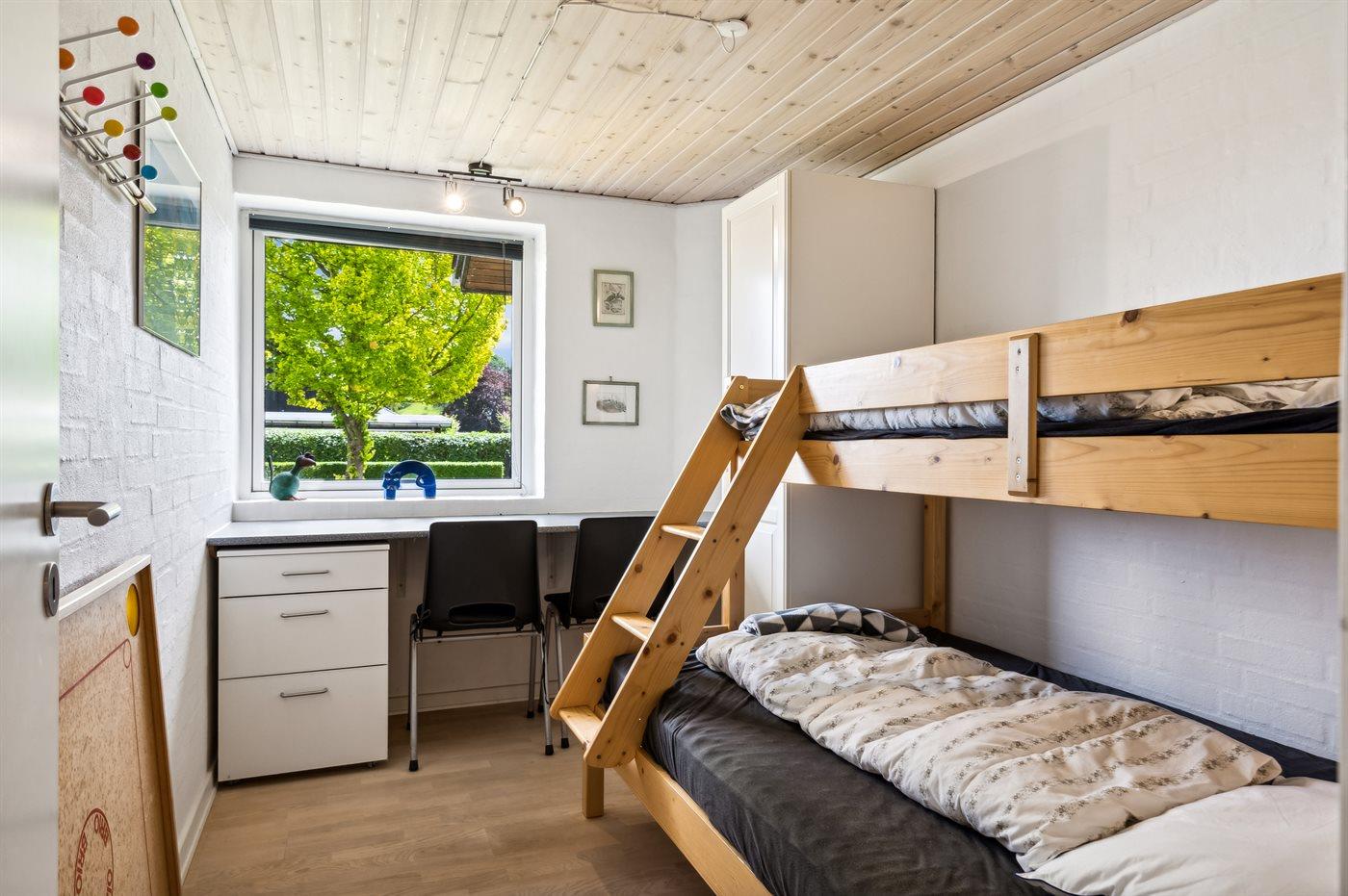 Der er i alt 3 soveværelser. Sovepladserne fordeler sig på: 2 sovepladser i dobbeltseng. 2 sovepladser i enkeltsenge. 2 sovepladser i køjeseng. Derudover er der 1 stk. barneseng.