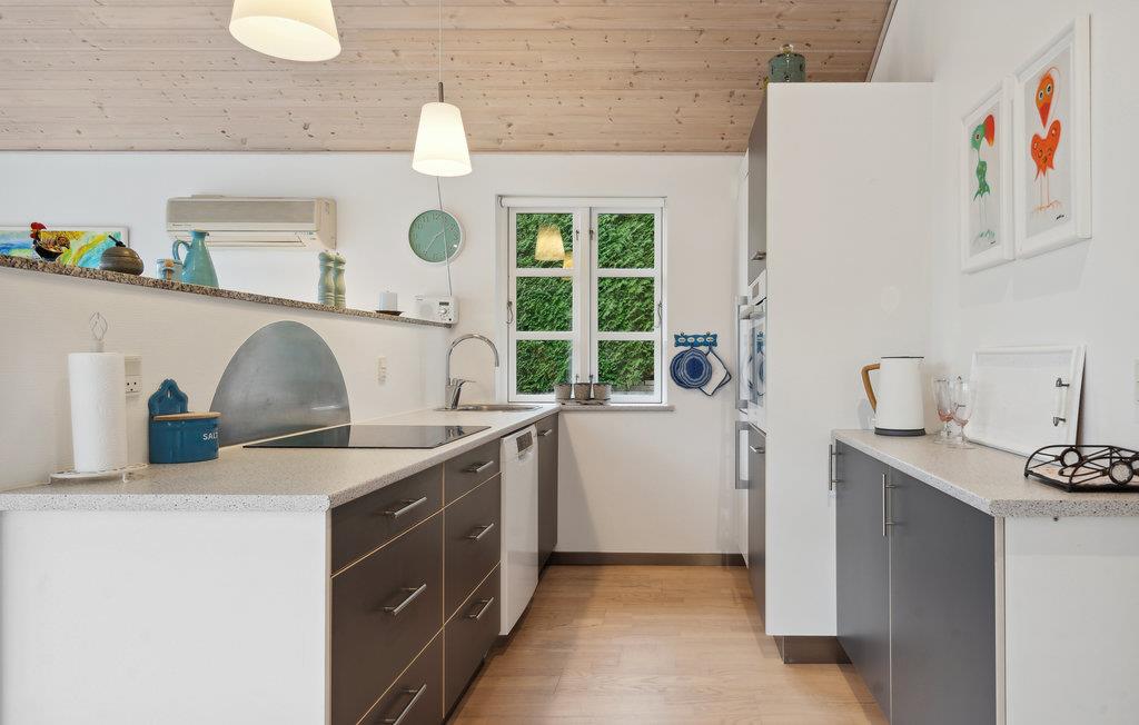 Senere kan I samles til lækker grillmad på den store terrasse, spille kort og nyde udsigten. For børnene er der kun 50 meter til det store grønne fælles område, hvor de kan boltre sig på legepladsen eller boldbanen. Når mørket falder på, og stjernerne langsomt lyser aftenhimlen op, kan I bage snobrød eller riste skumfiduser over ilden på bålpladsen. Næste morgen kan I tage jeres strandtaske og gå til Andkær Vigs sandstrand, hvor I kan bade eller hygge jer med en picnic med udsigt over fjorden.
