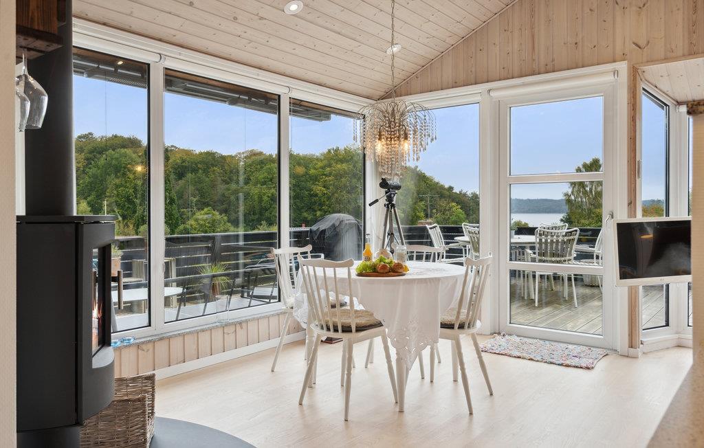 Træd indenfor og nyd den dejlige atmosfære i den lysgennemstrømmede stue. Her vil I føle jer hjemme. Sæt jer godt til rette i de smagfulde sofaer, se på fuglene over vandet eller slap af med en god bog i lænestolen. For børnene er der en hyggelig hems, hvor de kan lege og bygge huler i mange timer.