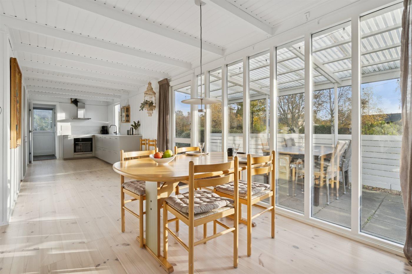 Charmerende og nyrenoveret sommerhus i Arnager med stor terrasse og kort afstand til strand og ø-havn.