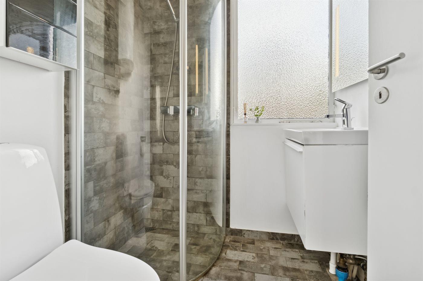 Der er 1 badeværelse med bruseniche og 1 toilet.. Der er gulvvarme på 1 badeværelse.