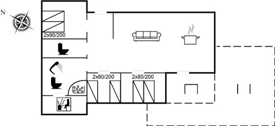 Der er i alt 3 soveværelser. Sovepladserne fordeler sig på: 4 sovepladser i dobbeltsenge. 2 sovepladser i enkeltsenge.