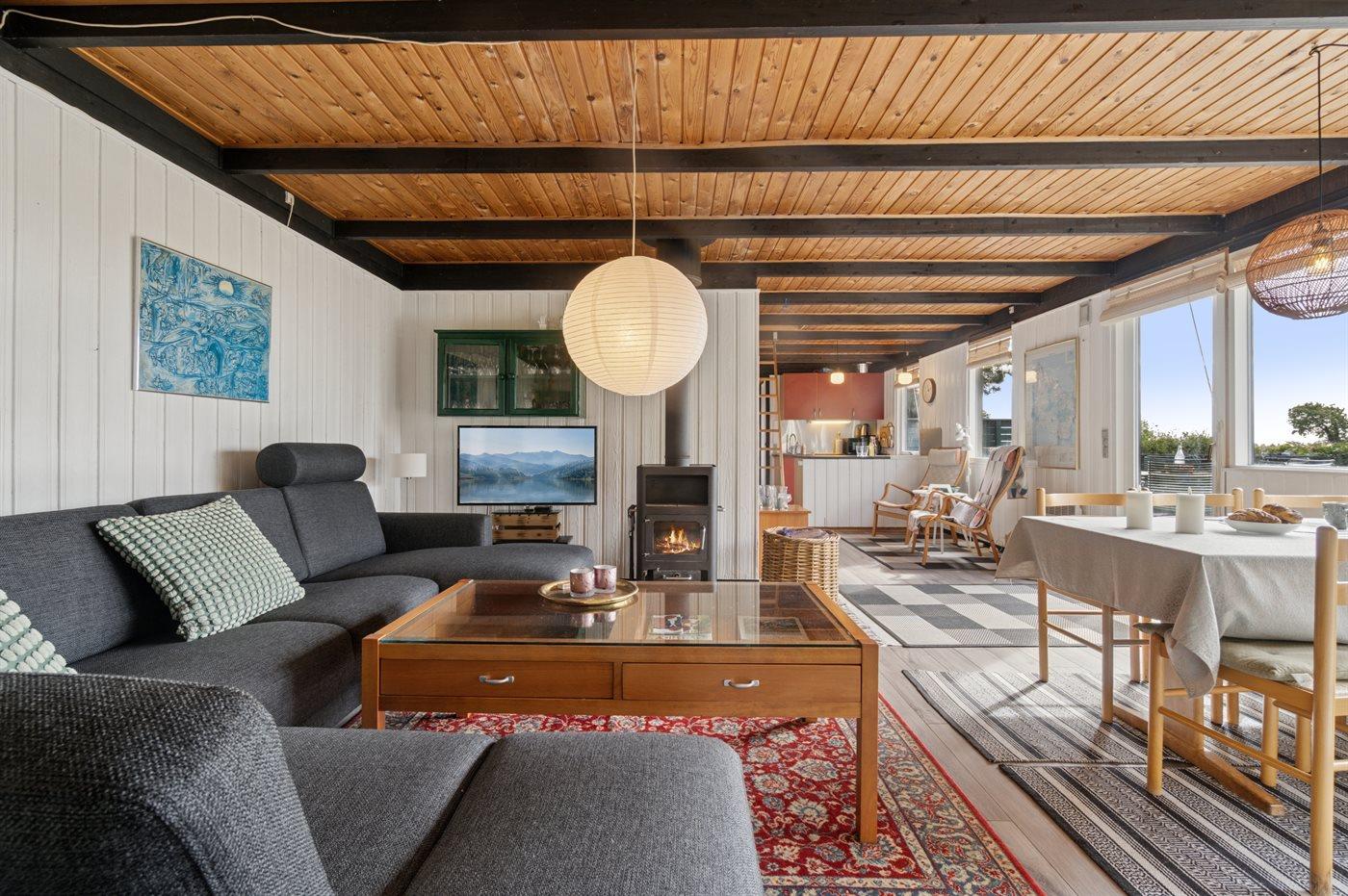 Et hyggeligt sommerhus med havudsigt - både fra huset og fra den store havvendte træterrasse. Grunden, som ligger for enden af en sommerhusvej, er ret så uforstyrret og du kan nyde afslappende timer i det fri.