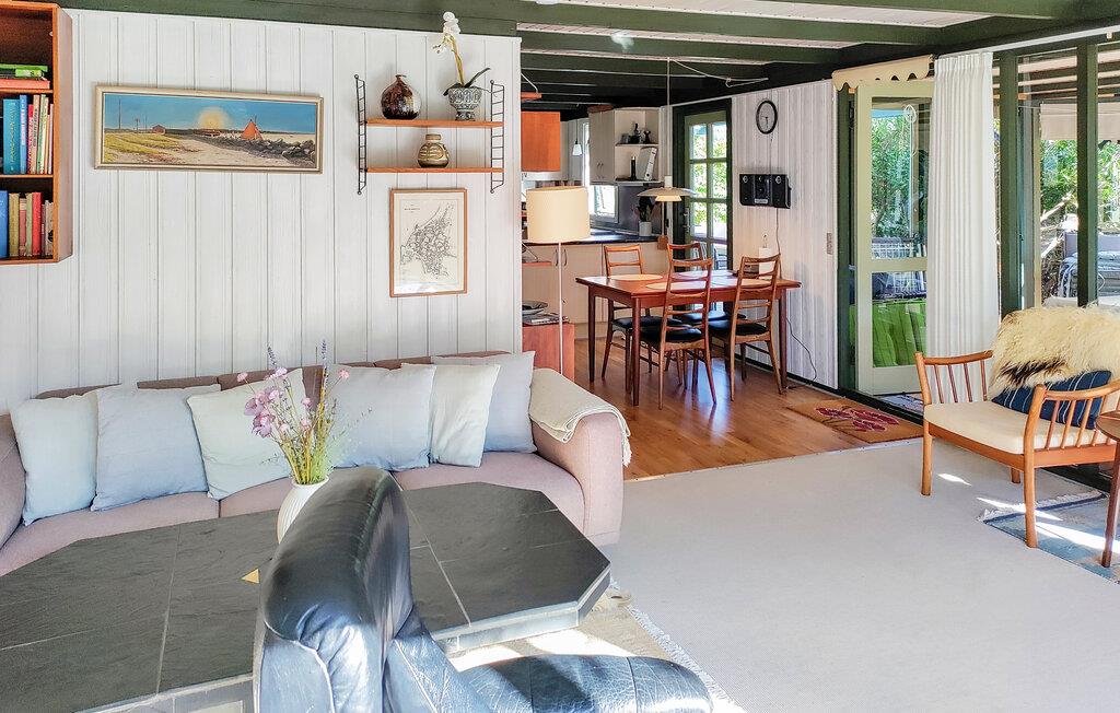 Den lille landsby Arnager huser Danmarks første ø-havn, som på helt unik vis er forbundet med fastlandet via en ca. 200 meter lang træbro, og i dette gamle fiskerleje ligger dette olivengrønne træhus med god plads til den lille familie og en flot anlagt have. Glæd jer til kvalitetstid og nærvær! Her kan I samles om spillekonkurrencer, puslespil og madlavningsaftener eller sætte jer godt til rette i en af lænestolene med en spændende bog. I udestuen kan I nyde måltiderne, når vejret er knapt så godt. Haven med blomstrende buske og mange smukke træer er et dejligt sted for både store og små. Her er der mange muligheder for leg. Lad jeres børn spæne rundt, mens I nyder en kølig drink på den delvist overdækkede terrasse og forbereder grillen til aftenens BBQ. Her kan I drage fordel af husets beliggendhed og gå til stranden flere gange om dagen.