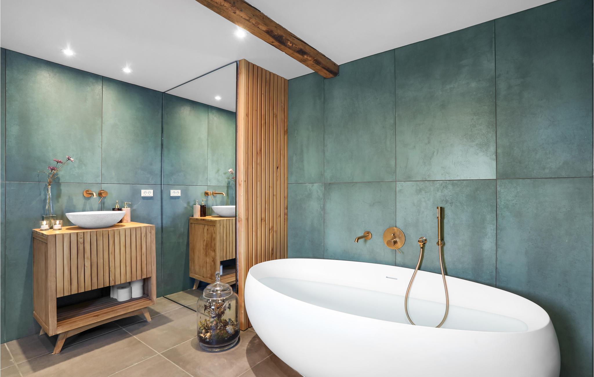 Badeværelse (nr. 1) - Varmt og koldt vand. Bruser og badekar