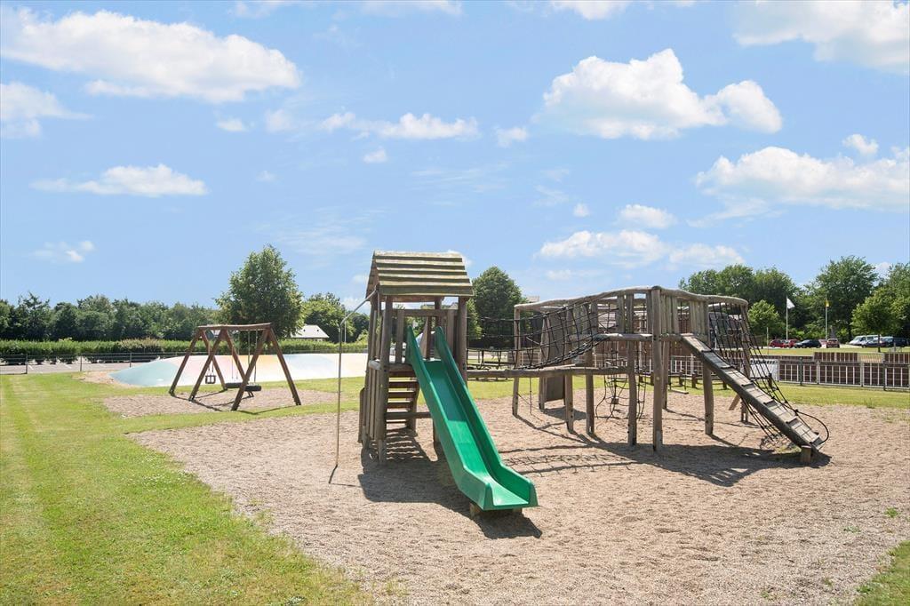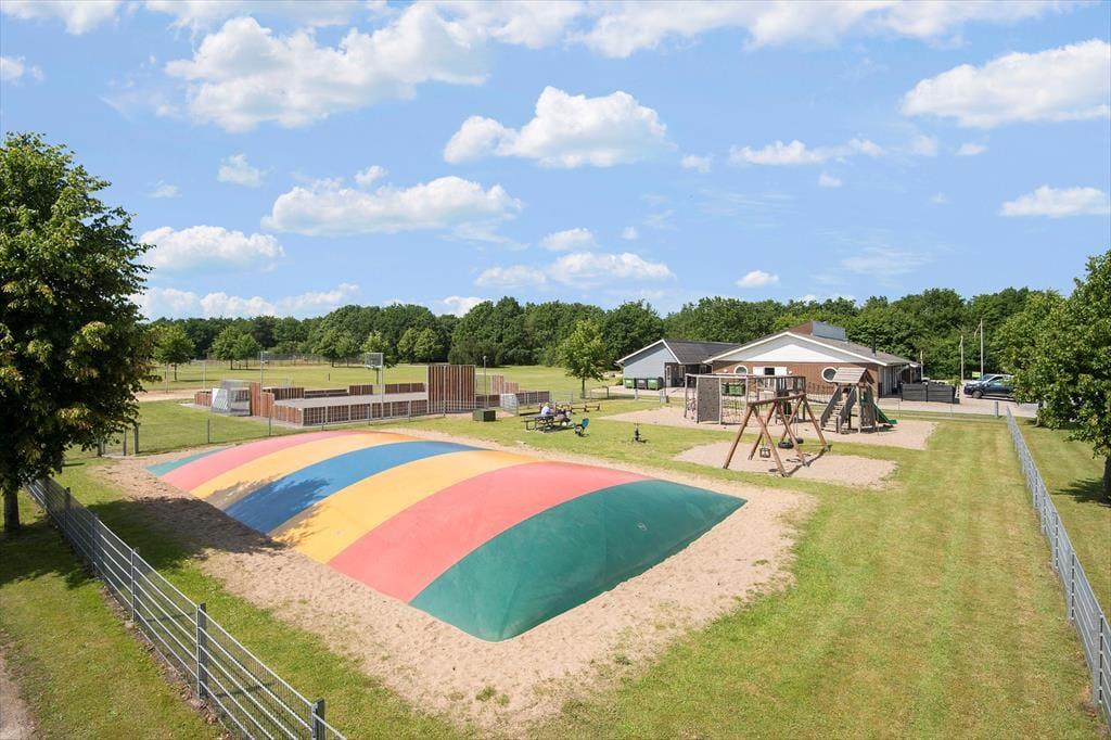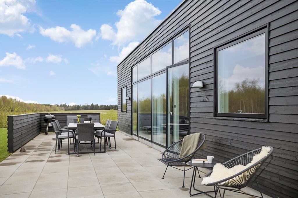Fra opholdsstuen kan du træde direkte ud på en stor, solrig terrasse med komfortable havemøbler – det ideelle sted til lange grillaftener, morgenkaffe i den friske luft eller stille stunder, hvor du bare nyder udsigten over det åbne landskab. Den store græsplæne indbyder til boldspil, leg og sjov for både børn og voksne, og her kan feriedagene let gå med både afslapning og aktiviteter under åben himmel.
