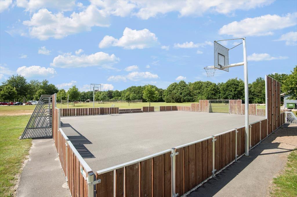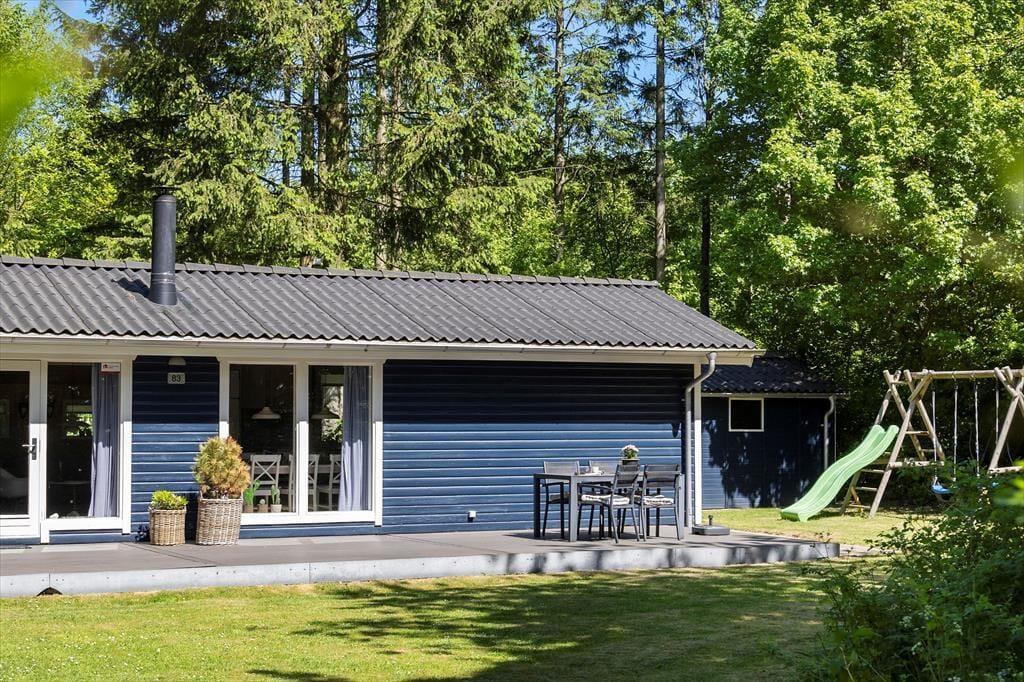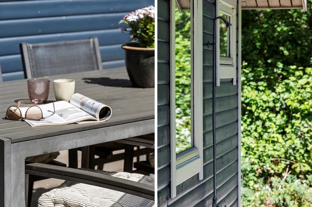Udenfor venter en dejlig terrasse, hvor du kan starte dagen med morgenkaffe i solens stråler. Den store naturgrund giver masser af plads til leg og aktiviteter, og børnene kan frit udforske og lege i de grønne omgivelser. Her er der mulighed for at samle familien til hyggelige grillaftener eller bare slappe af med gode samtaler under stjernerne. Området indbyder til ro og fordybelse, hvor du kan lade naturens lyde og dufte fylde sanserne.