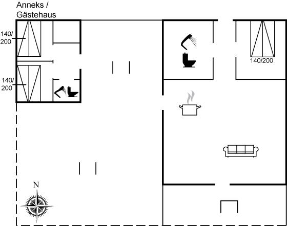 Der er i alt 3 soveværelser. Sovepladserne fordeler sig på: 6 sovepladser i dobbeltsenge.- 2 af disse sovepladser befinder sig i et anneks.