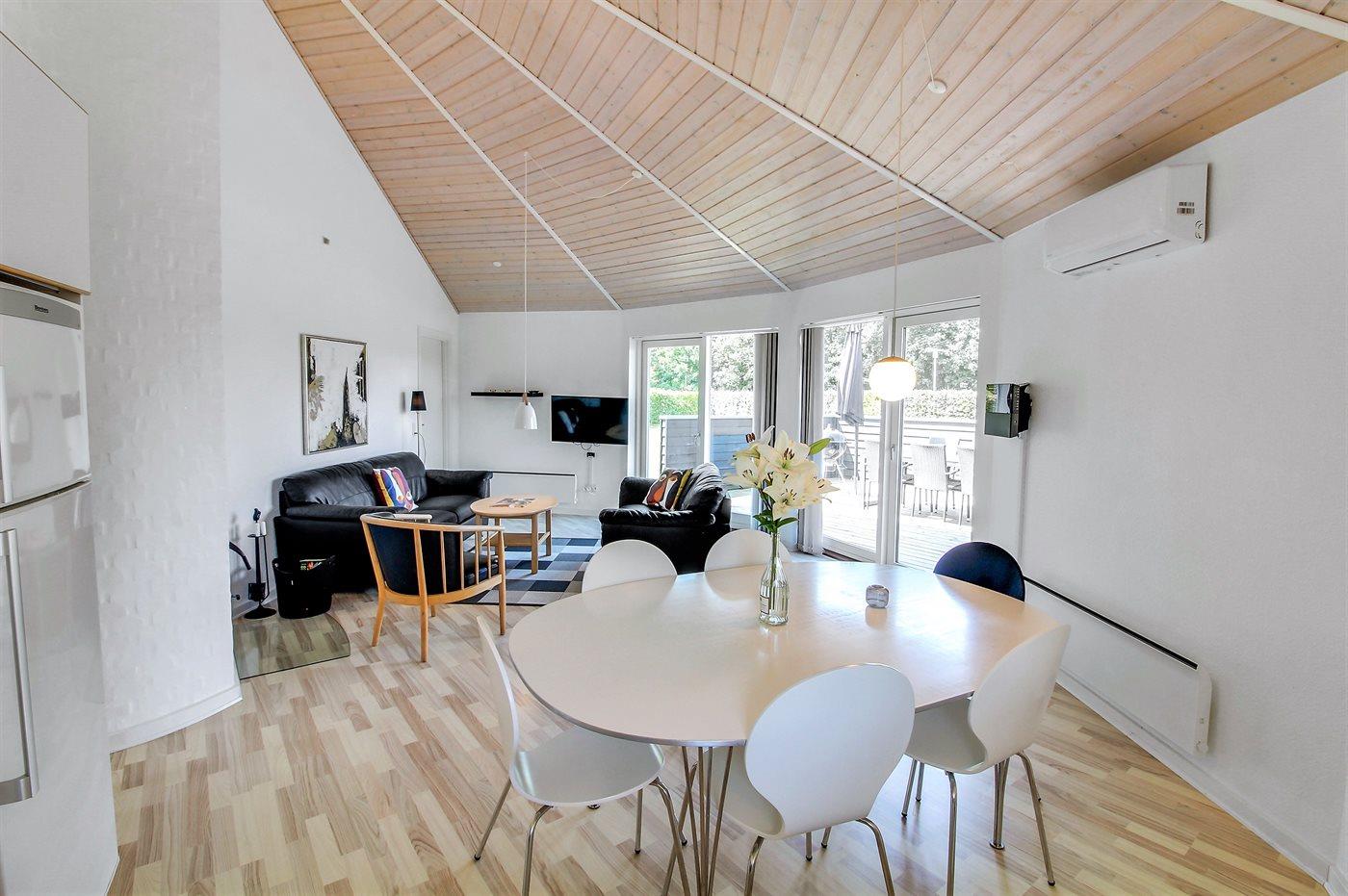 Flot træsommerhus med moderne design og spabad i naturskønne Arrild Ferieby.