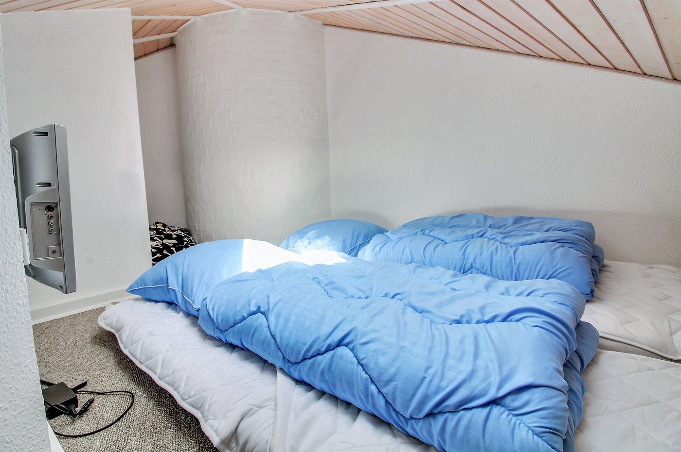 Der er i alt 2 soveværelser. Sovepladserne fordeler sig på: 4 sovepladser i dobbeltsenge. 2 sovepladser i enkeltsenge. Derudover er der 1 stk. barneseng.