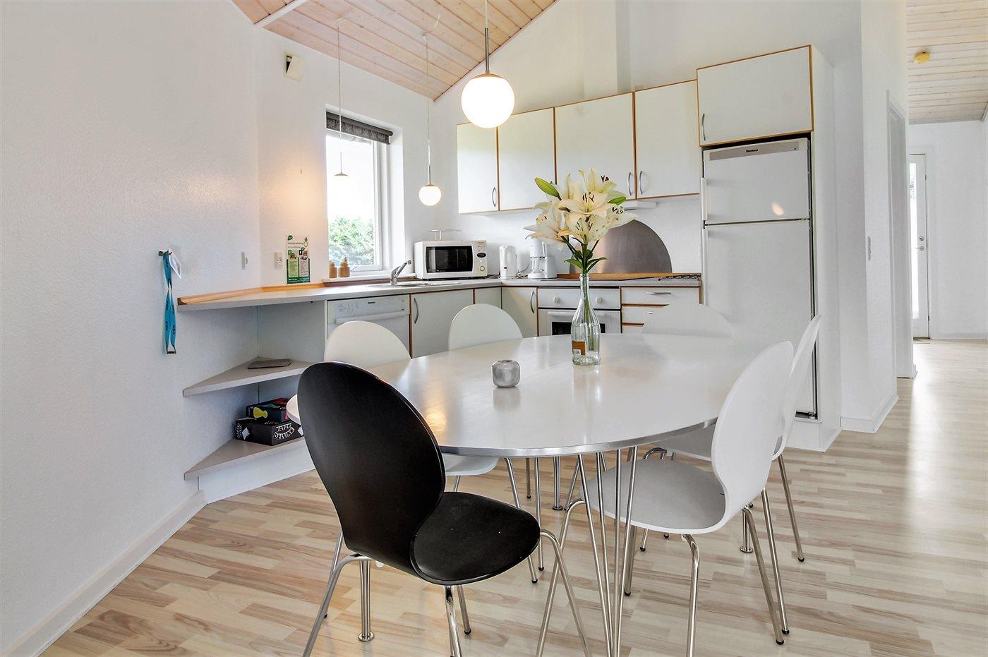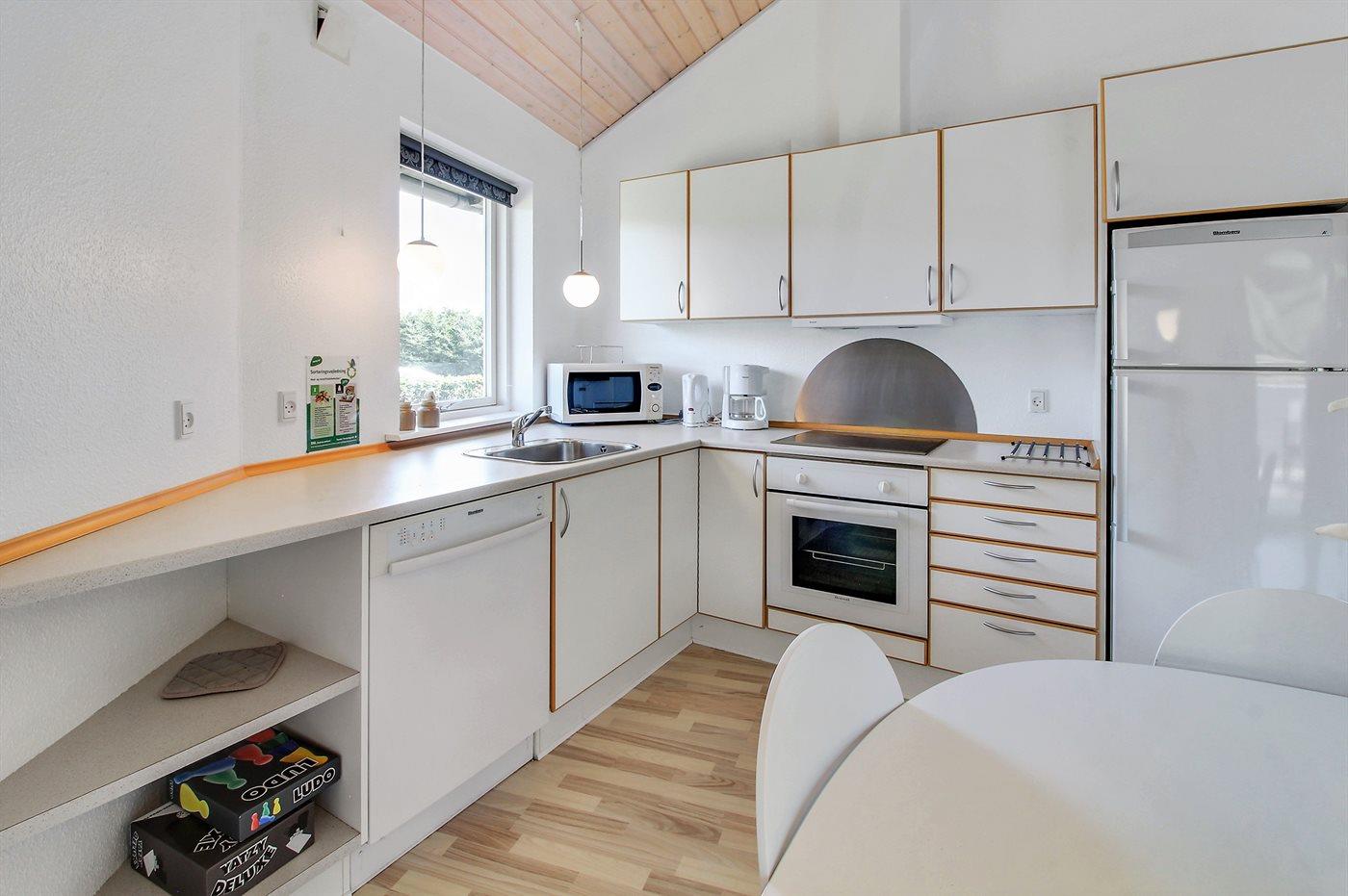 Køkkenet er udstyret med 1 køleskab. Der er 4 keramiske kogeplader, varmluftovn, mikrobølgeovn samt opvaskemaskine.