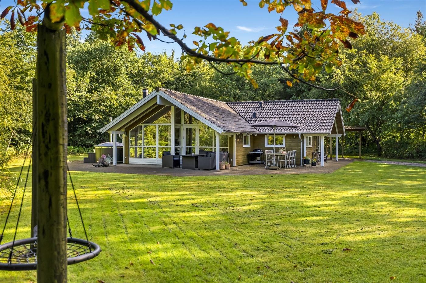 Lækkert sommerhus i naturskønt skovområde med spa, sauna og stor terrasse nær Arrild Fiskesø og badeland.