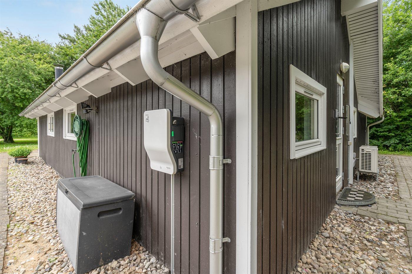 Ferieboligen er beliggende på en 805 m² stor naturgrund. Der er 28000 m til havet. Nærmeste forretning er beliggende i en afstand af 1000 m. Der er en golfbane i en afstand af 1500 m. Til ferieboligen hører 30 m² terrasseareal. Desuden er der 10 m² overdækket terrasse. Gynge. Sandkasse. Der er installeret stik til opladning af elbil. Parkering ved ferieboligen.