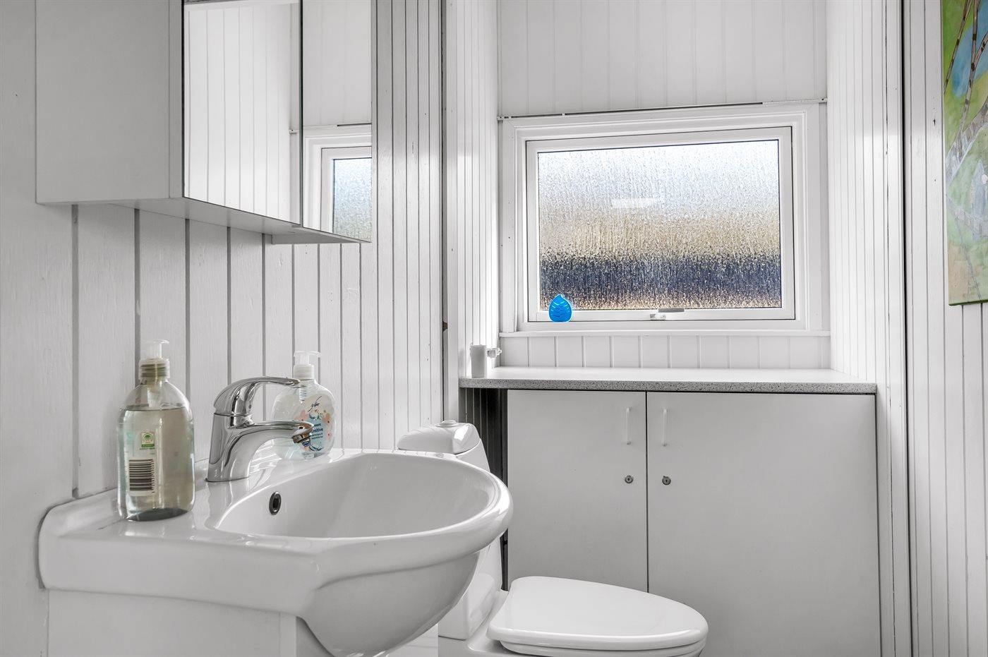 Der er 1 badeværelse med bruseniche og 2 toiletter, heraf 1 gæstetoilet.