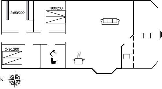 Der er i alt 3 soveværelser. Sovepladserne fordeler sig på: 4 sovepladser i dobbeltsenge. 4 sovepladser i køjesenge. Derudover er der 1 stk. barneseng.
