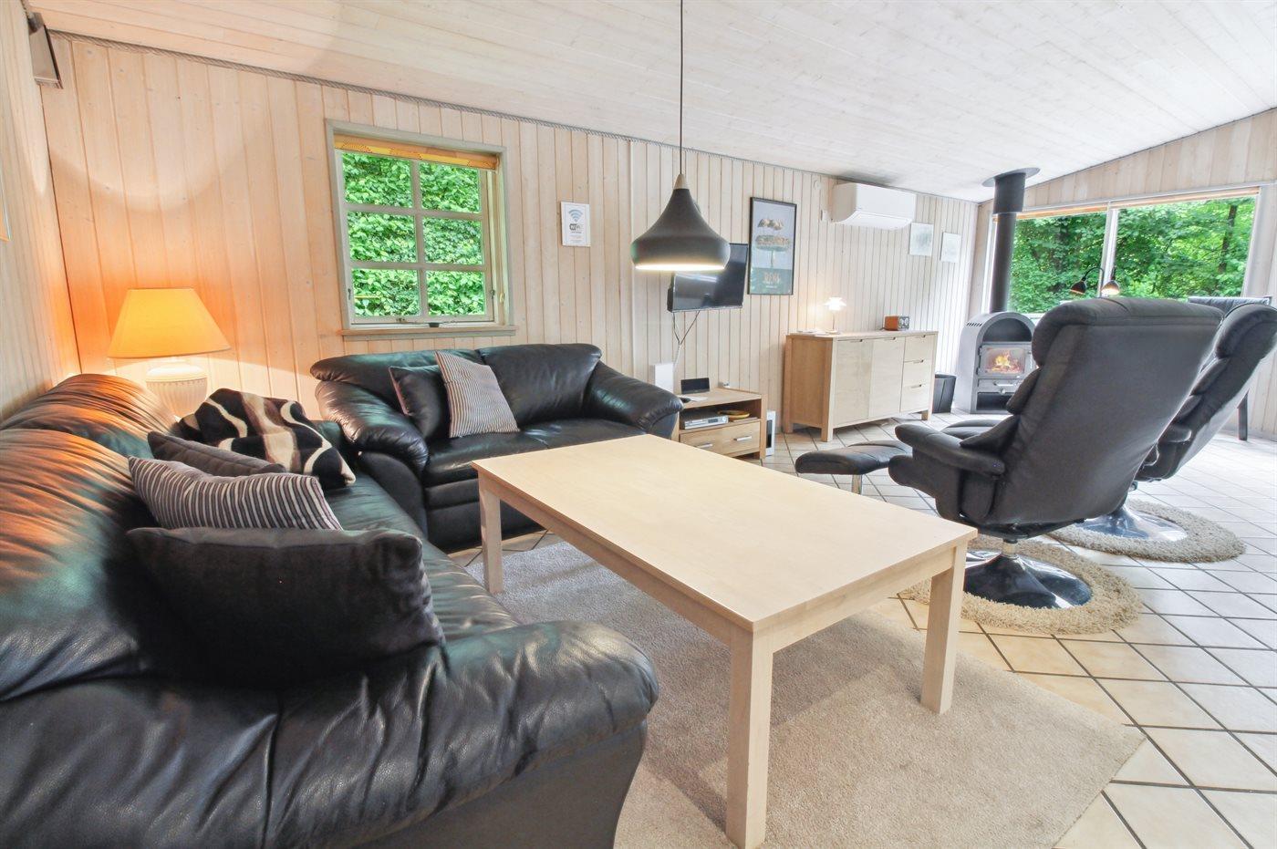 Hyggeligt sommerhus i naturskønt område med terrasse, brændeovn og oplader til elbil.