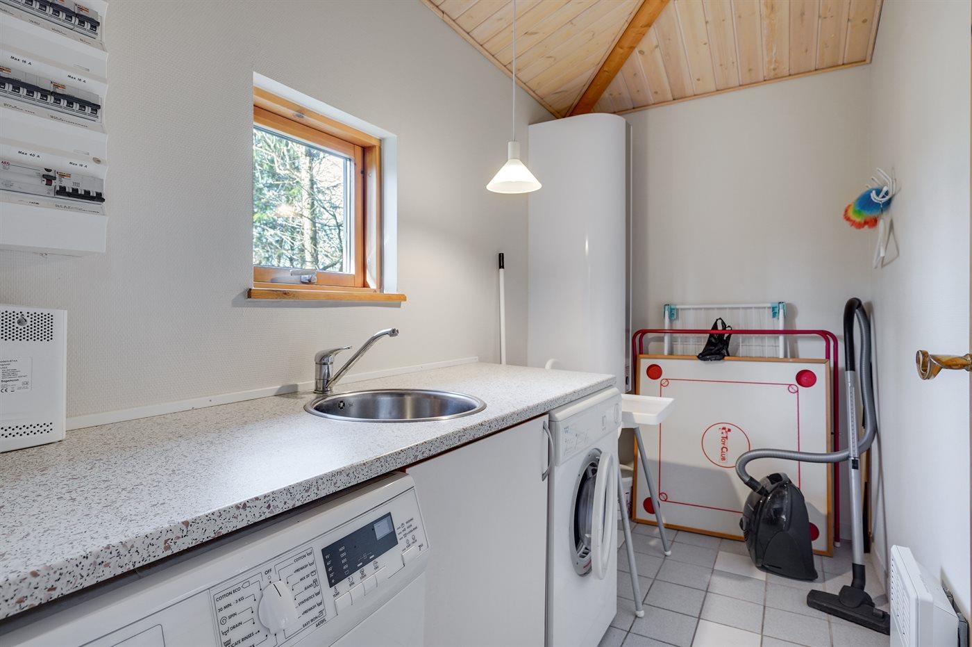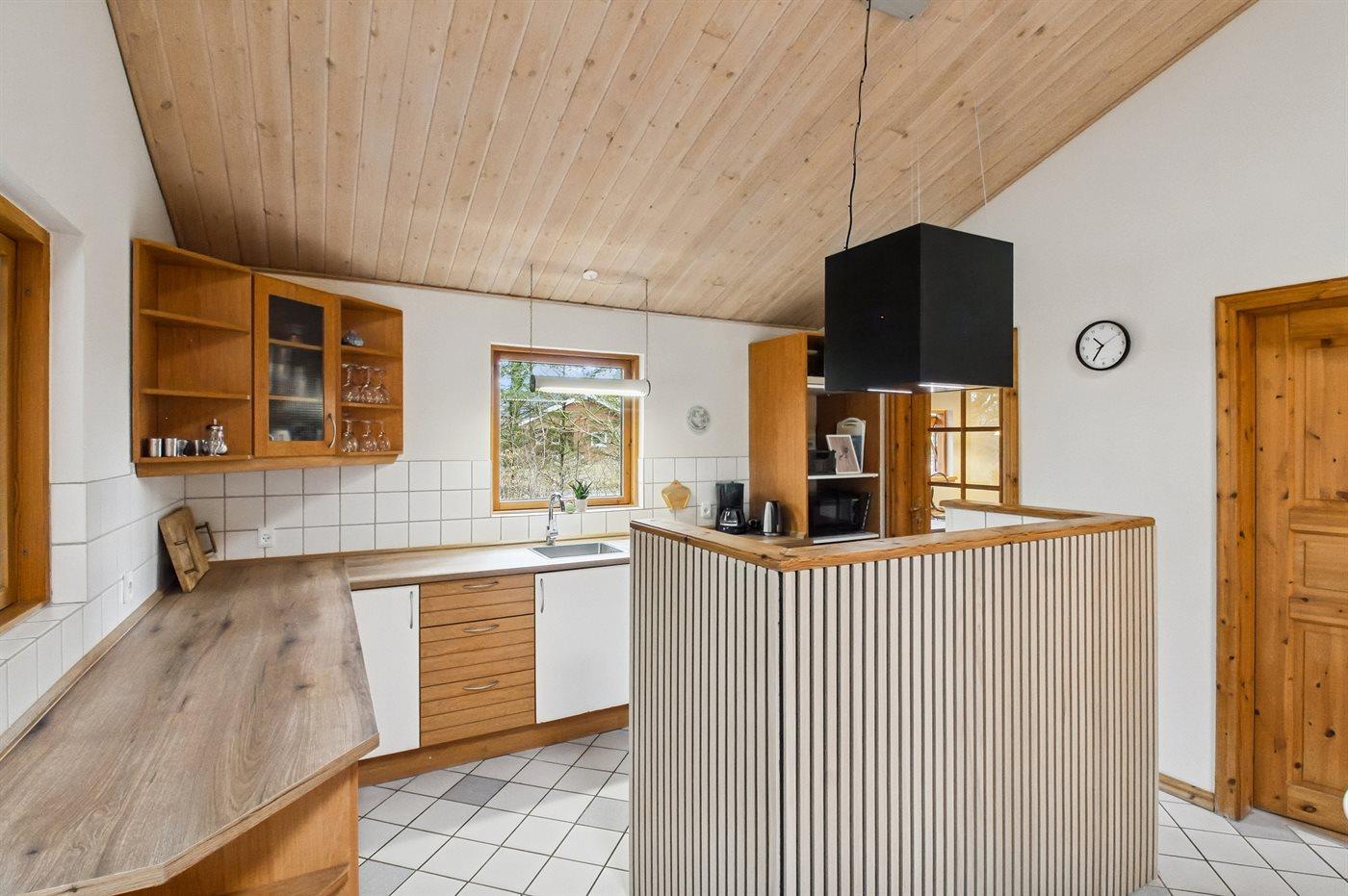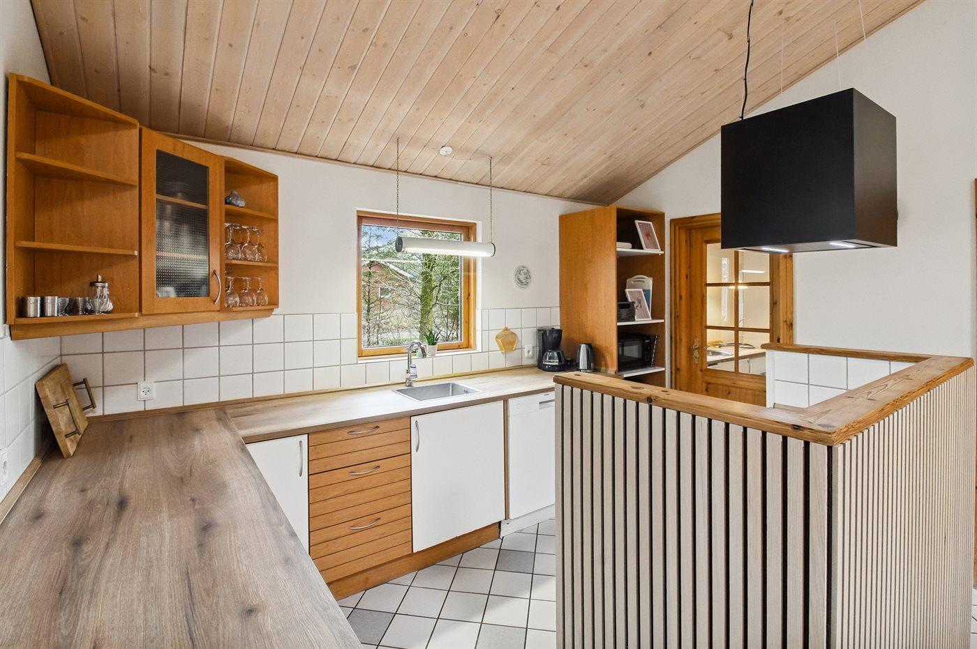 Køkkenet er udstyret med 1 køleskab. Der er 4 keramiske kogeplader, varmluftovn, mikrobølgeovn samt opvaskemaskine.