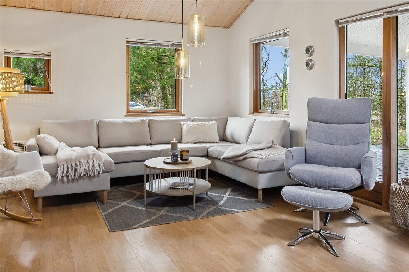 Dette pæne sommerhus ligger på en grund med god plads til boldspil og leg.